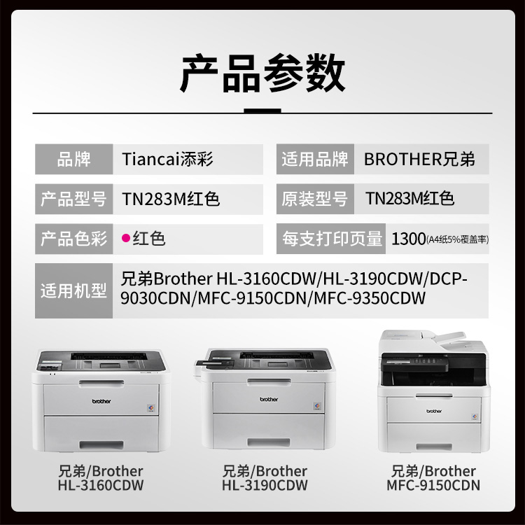 添彩 TC-TN283M 商用版 适用于Brother HL-3160CDW HL-3190CDW DCP-9030CDN 打印量1300页 粉盒 1.00 只/个 (计价单位:个) 红色 红色