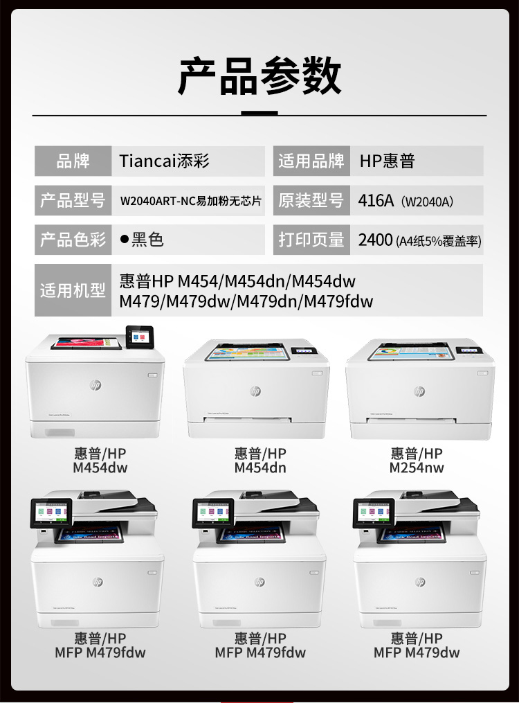 添彩 TC-W2040ART-NC 商用版 适用于HP M454/M479/M479dw/M479dn/M479fdw 打印量2400页 硒鼓 1.00 只/个 (计价单位:个) 黑色 黑色