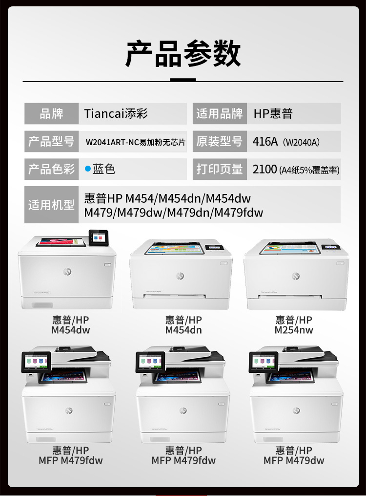 添彩 TC-W2041ART-NC 商用版 适用于HP M454/M479/M479dw/M479dn/M479fdw 打印量2100页 硒鼓 1.00 只/个 (计价单位:个) 蓝色 蓝色