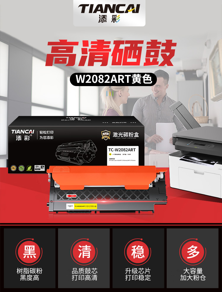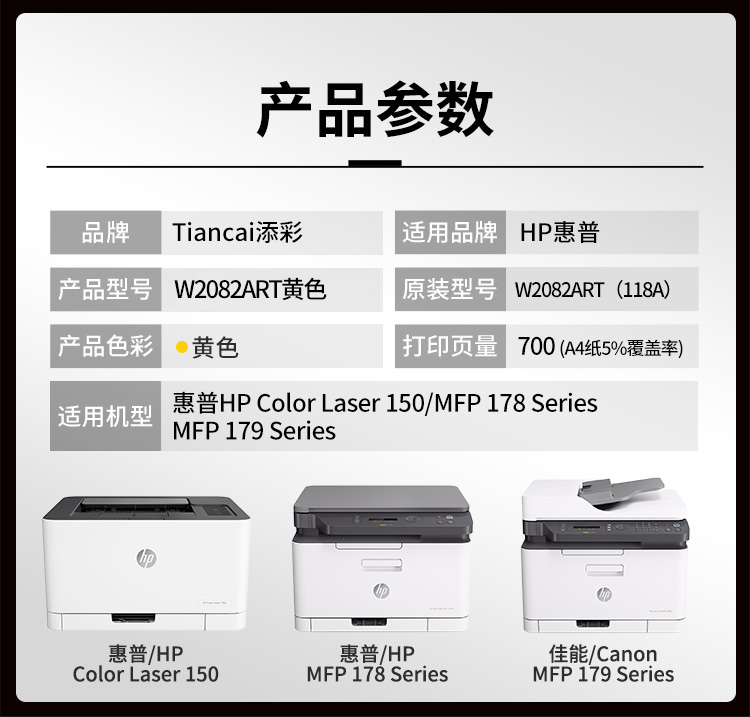添彩 TC-W2082ART 商用版 适用于HP 150/MFP 178 Series 粉盒个 黄色-打印量700页
