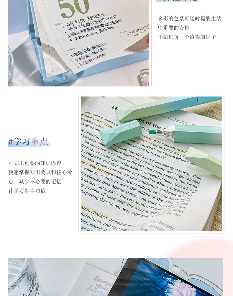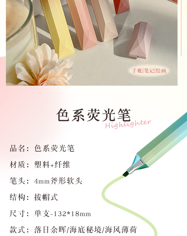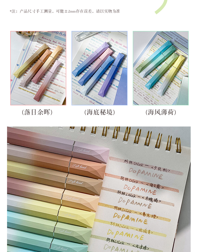 三年二班荧光笔彩色记号笔荧光标记笔学生用马克笔做笔记可划重点专用高颜值莹光笔手账手帐彩笔彩色笔/套 海风薄荷(绿色)