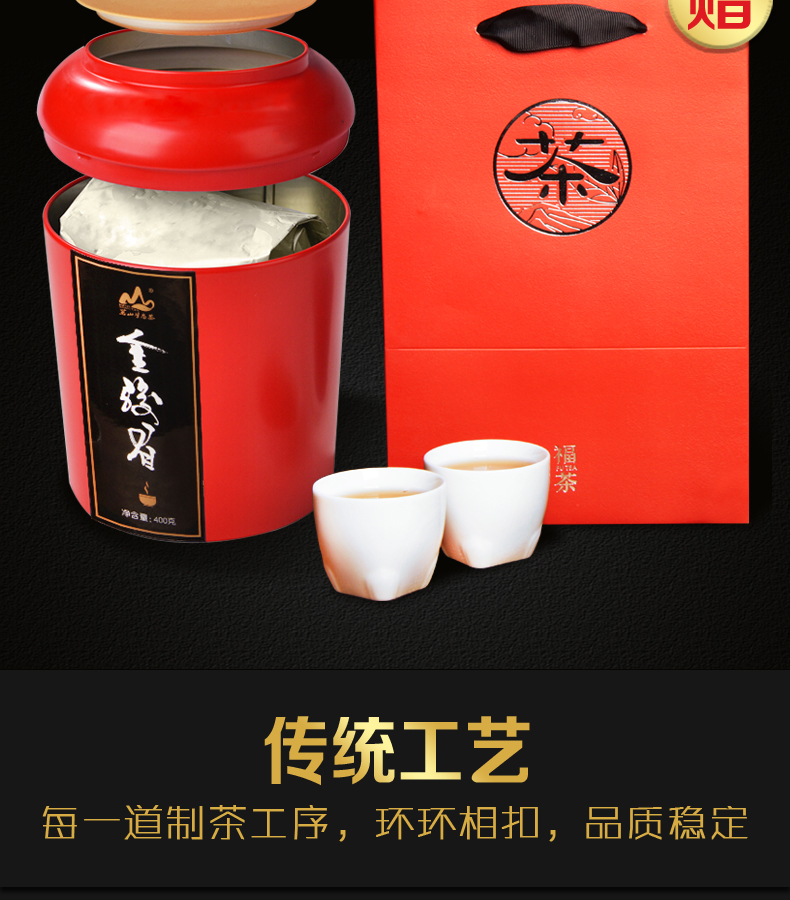 茗山生态茶 金骏眉红茶 一级新茶大份量礼罐装400g