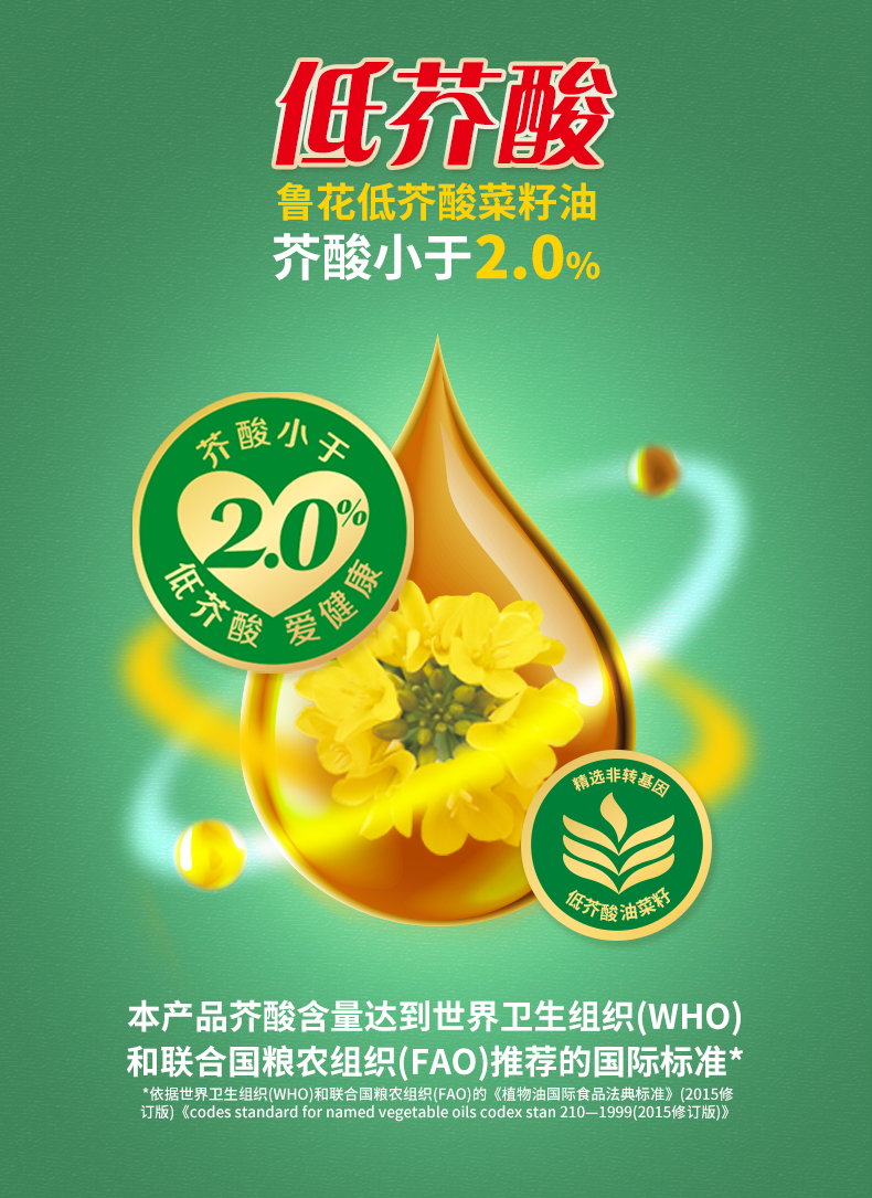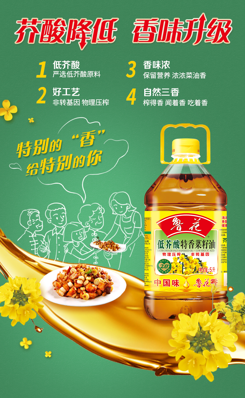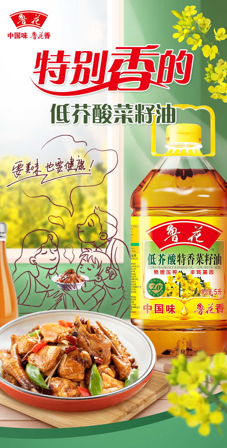 鲁花 低芥酸特香菜籽油5L*2桶 黄色