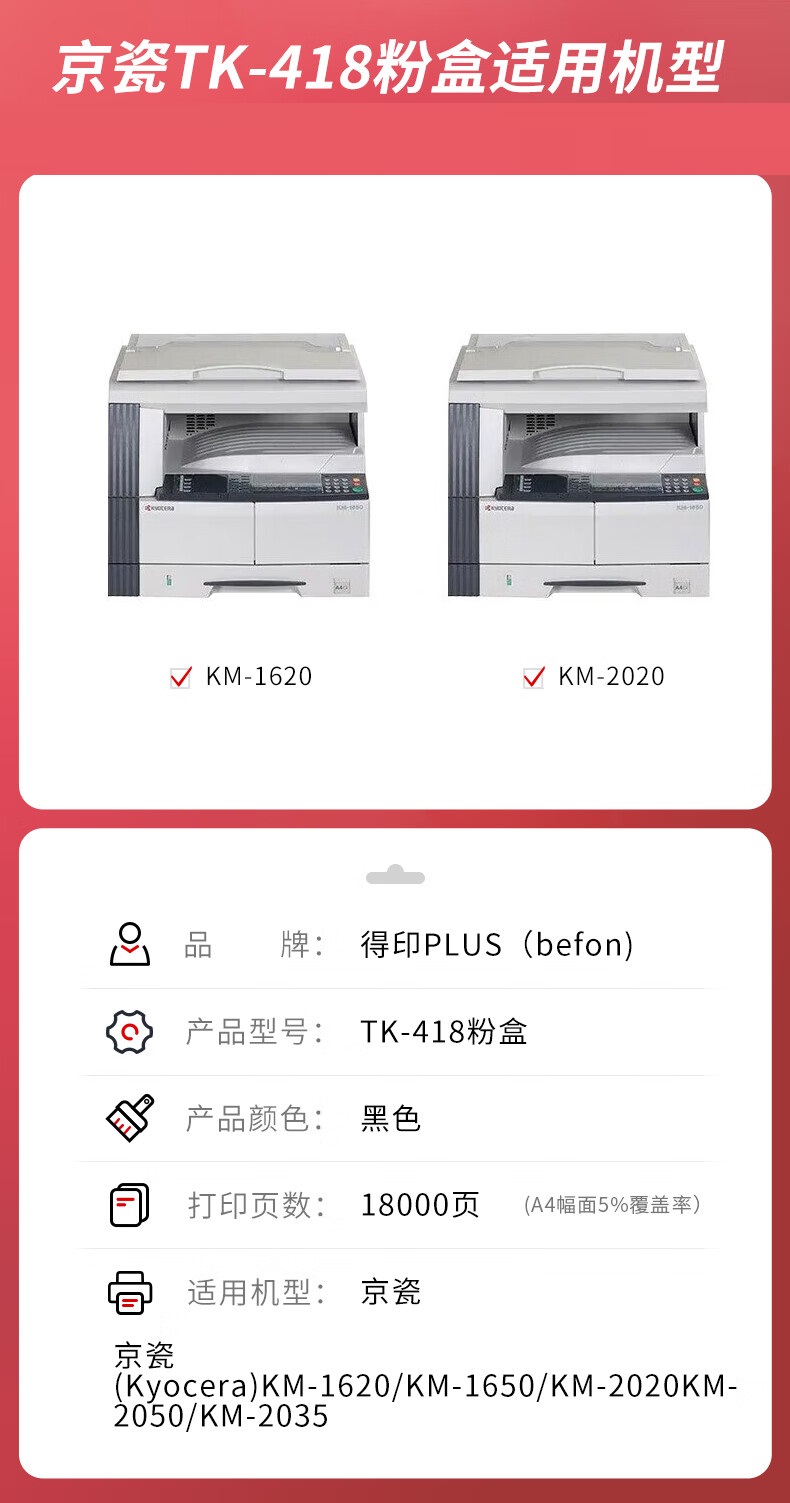 得印PLUS TK-418黑色粉盒 京瓷Kyocera KM-1620/KM-1650 单位:支 黑色