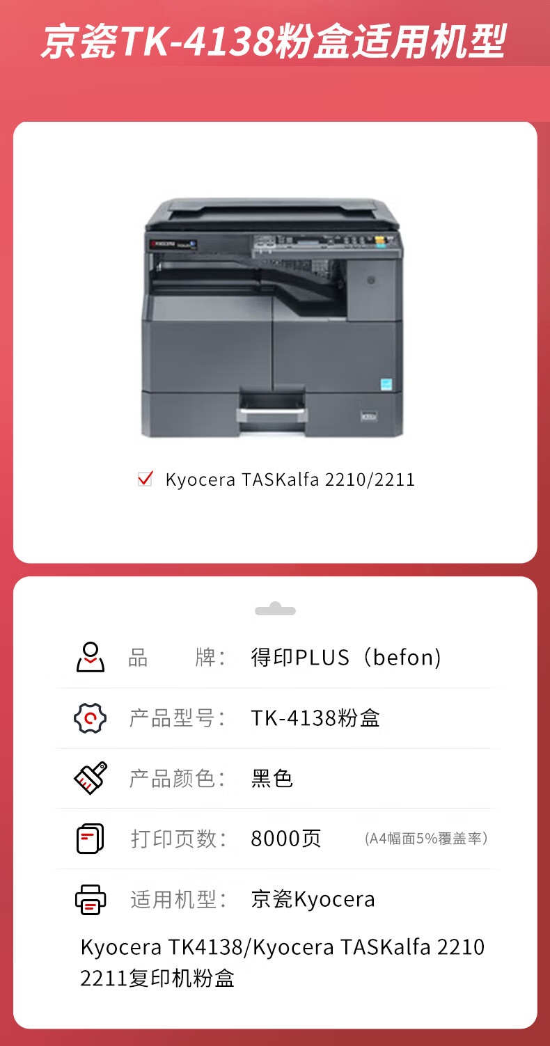 得印PLUS TK-4138黑色粉盒 京瓷 TASKAlfa 2210/2211 单位:支 黑色