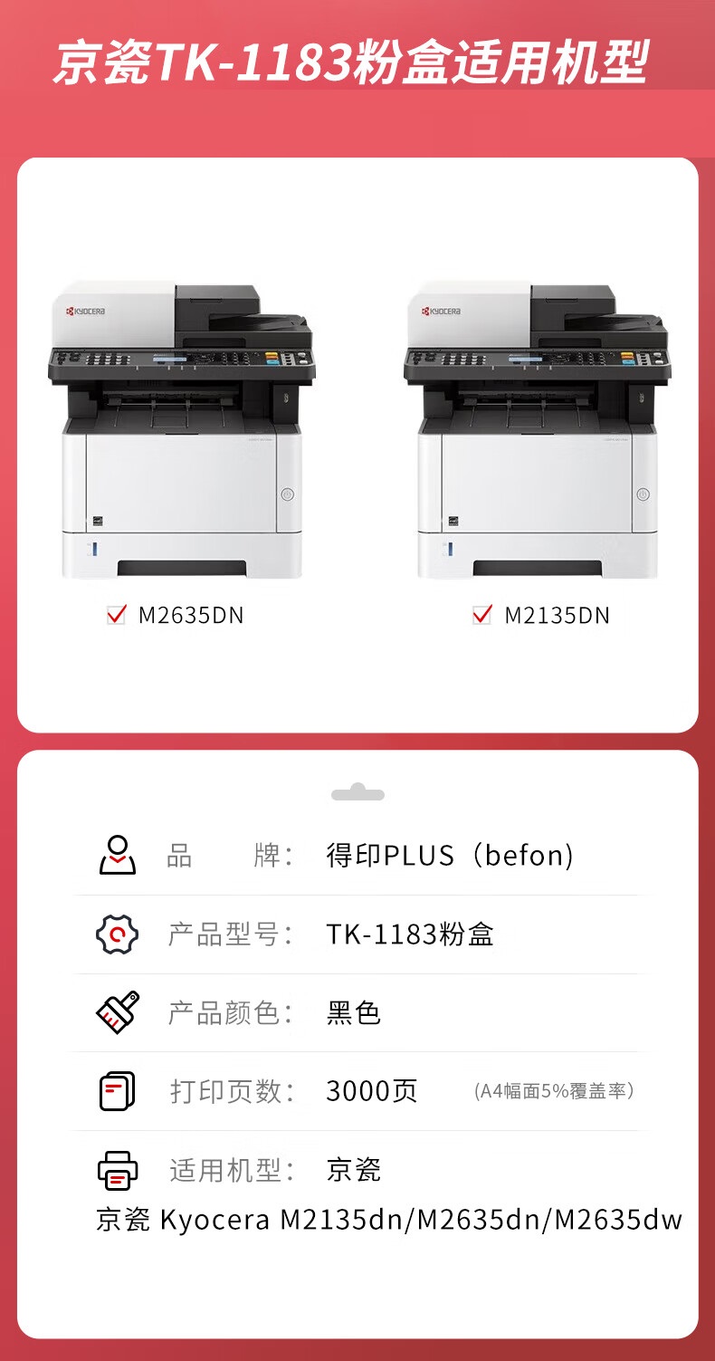得印PLUS TK-1183黑色粉盒 京瓷Kyocera M2135dn/M2635dn 单位:支 黑色