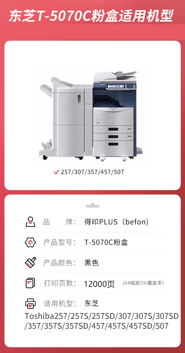 得印PLUS T-5070C黑色粉盒 东芝E-STUDIO257/307/357/457 单位 :支 黑色