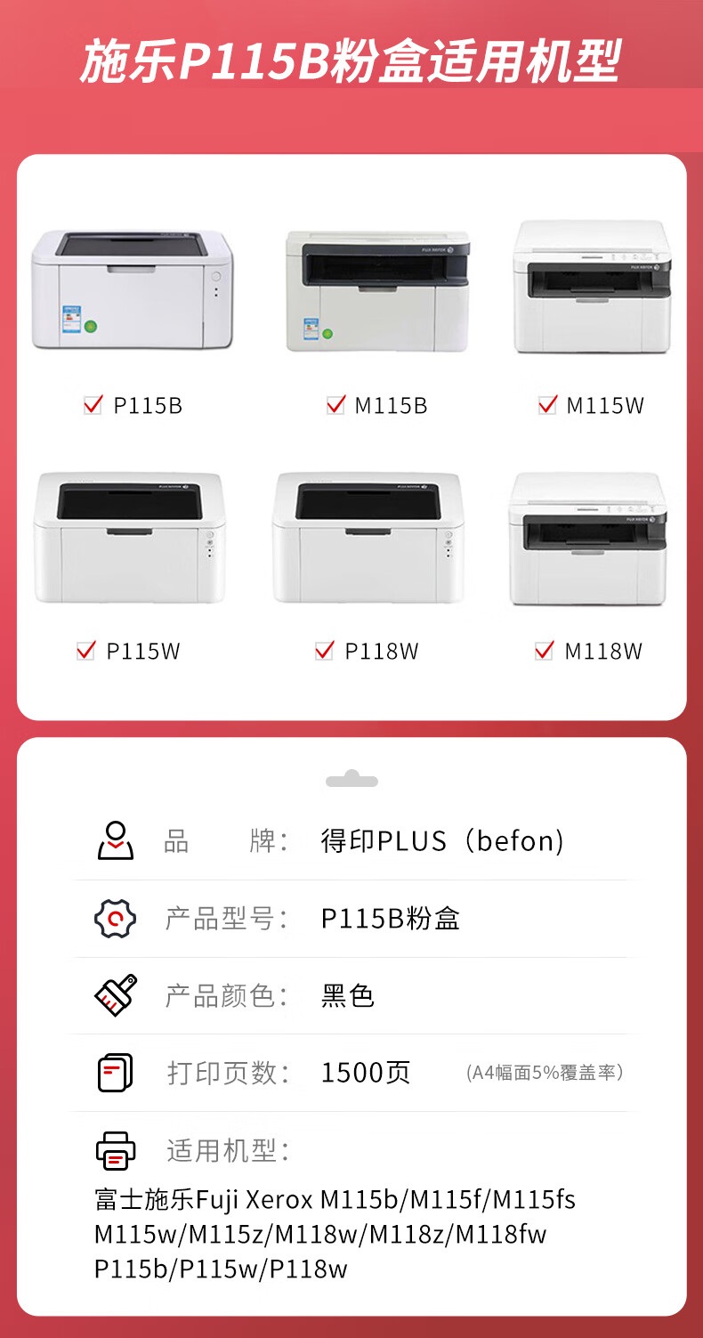 得印PLUS P115b黑色粉盒 富士施乐M115b/P118w/M118w 单位:支 黑色