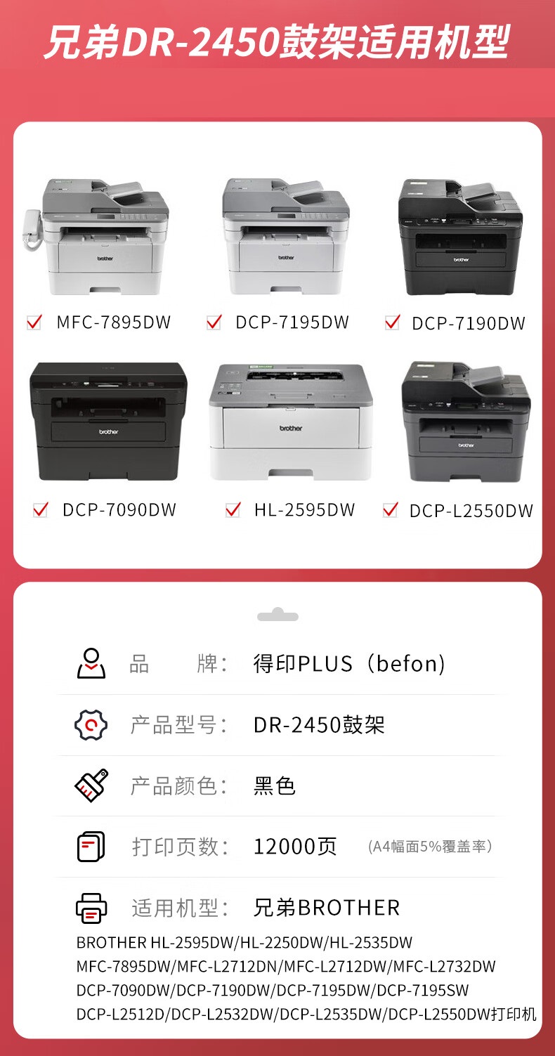 得印PLUS DR2450硒鼓组件 兄弟MFC-7895DW/DCP-7195DW 单位:支 黑色