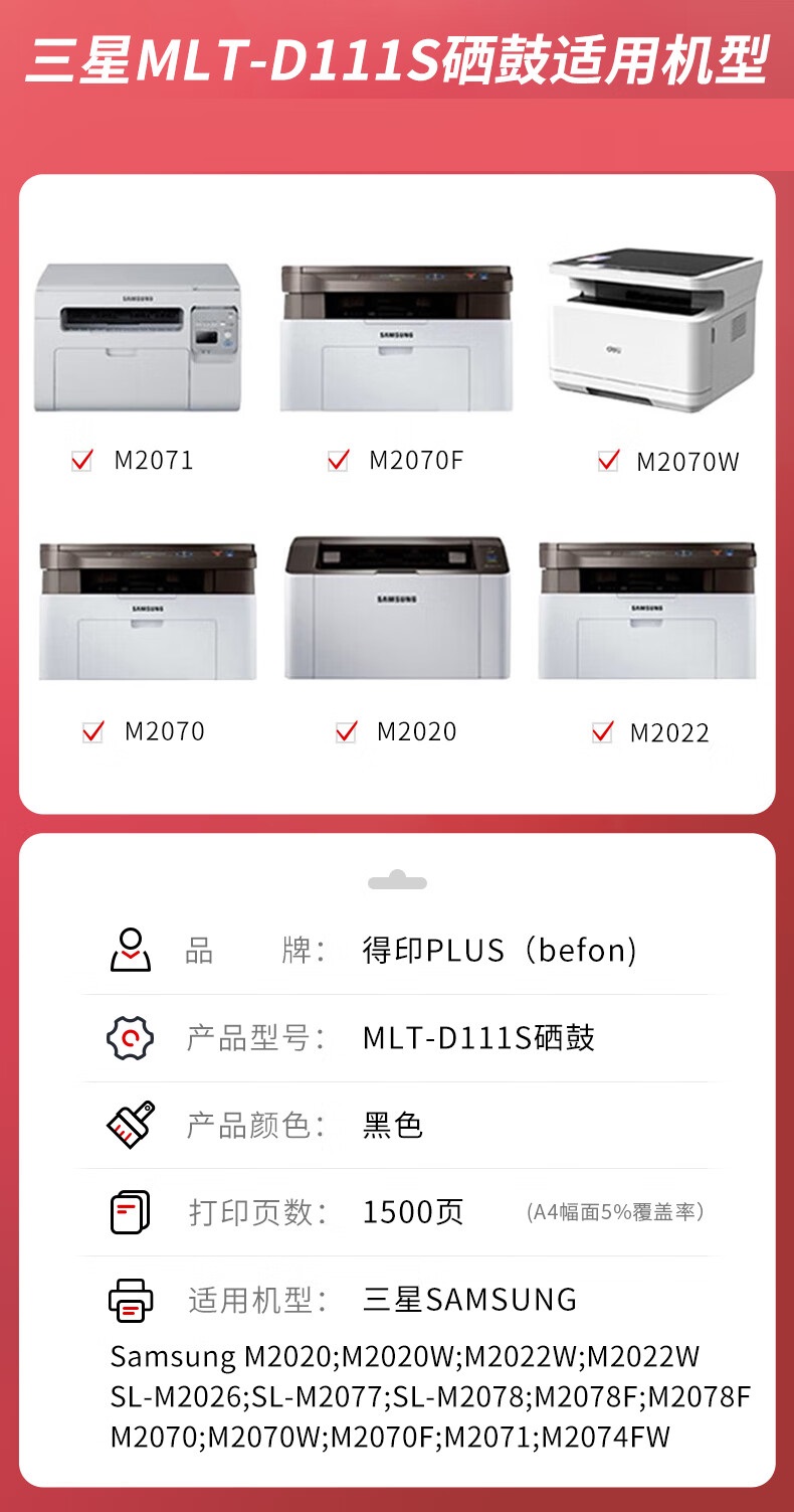 得印PLUS MLT-D111S黑色硒鼓 三星M2070/M2020/M2020W 单位:支 黑色