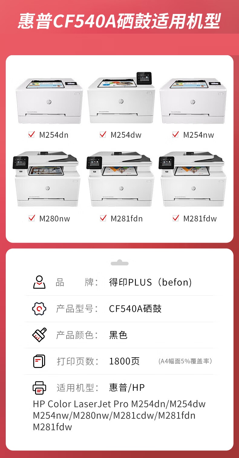 得印PLUS CF540A黑色硒鼓 惠普M281FDW/M254DW/M280NW 单位:支 黑色