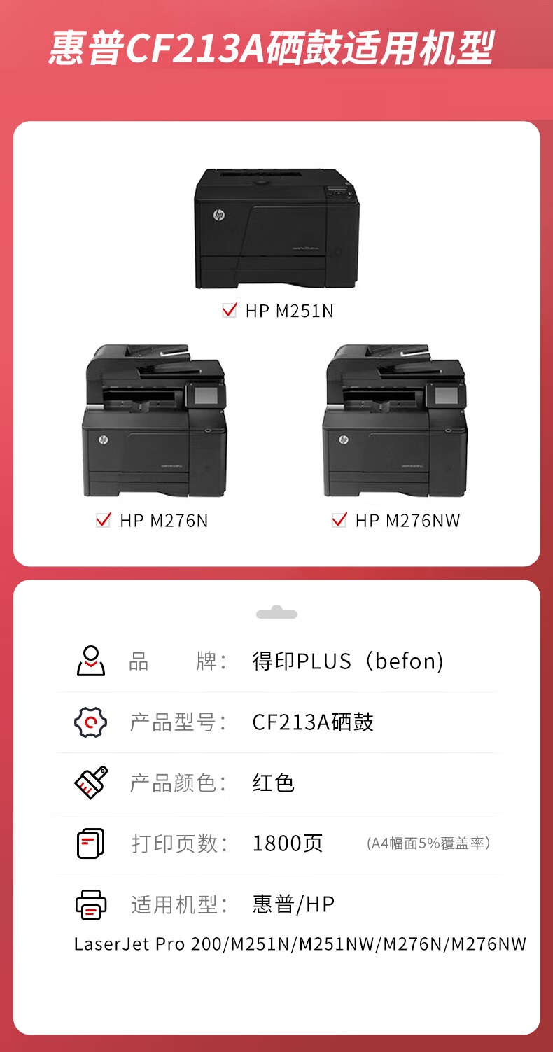 得印PLUS CF213A红色硒鼓 惠普M251n/M276n/M251nw/M276N 单位:支 红色