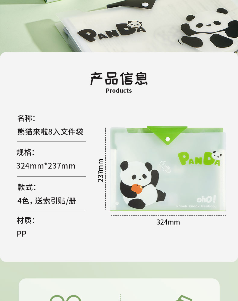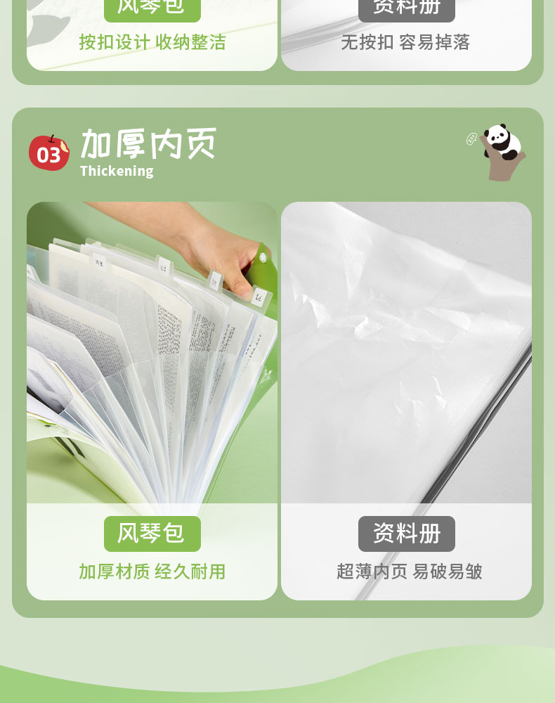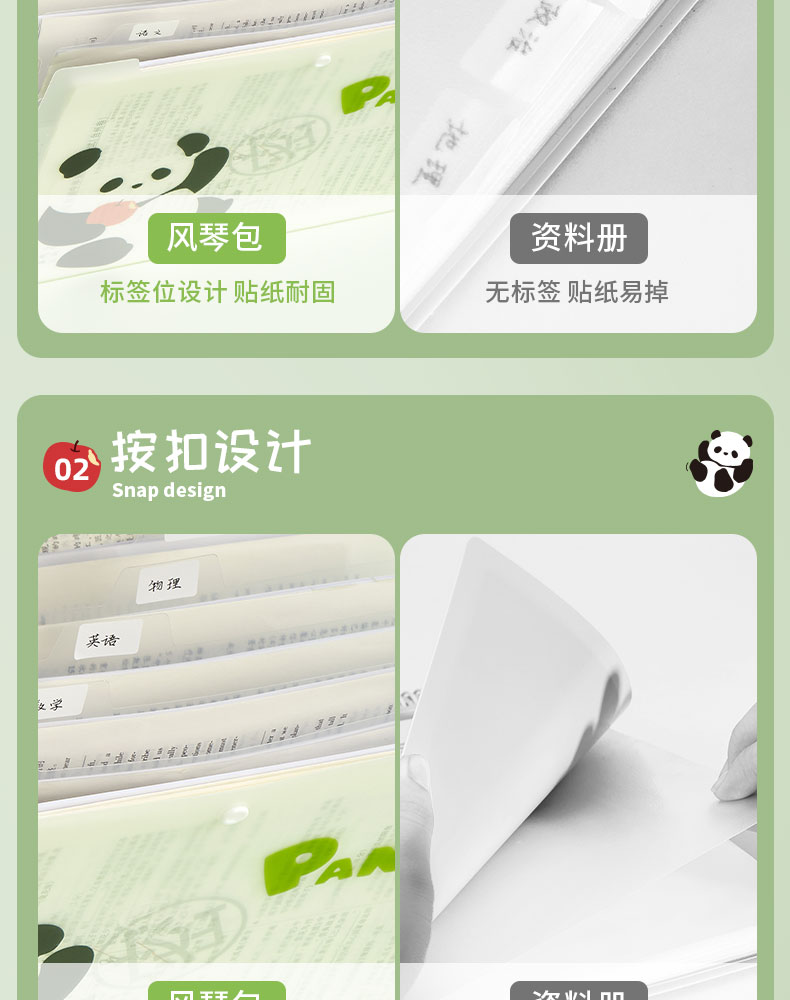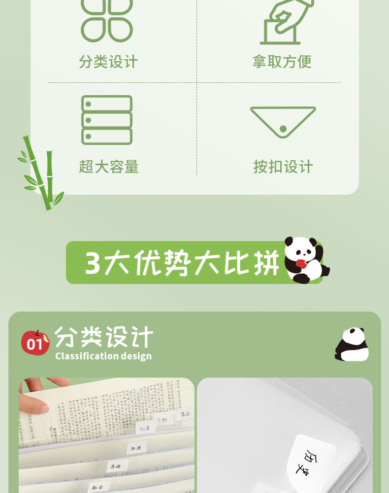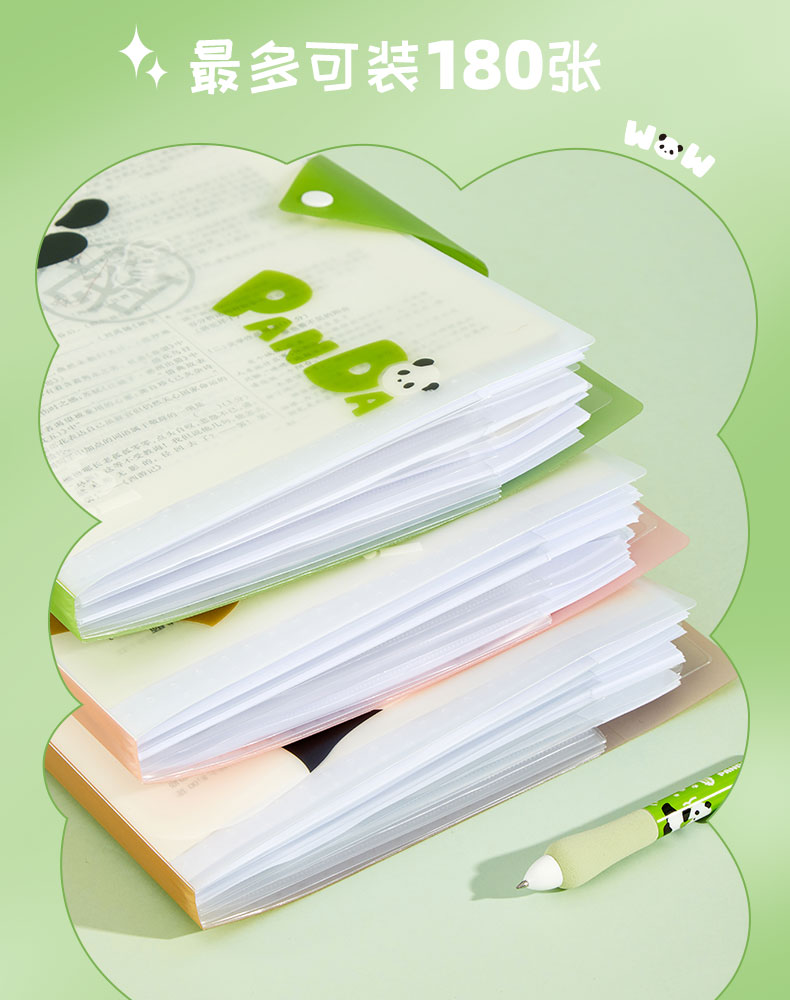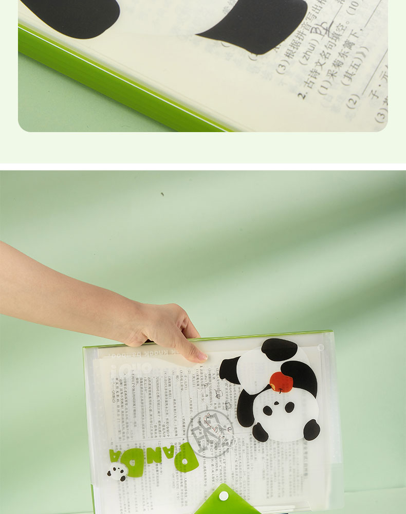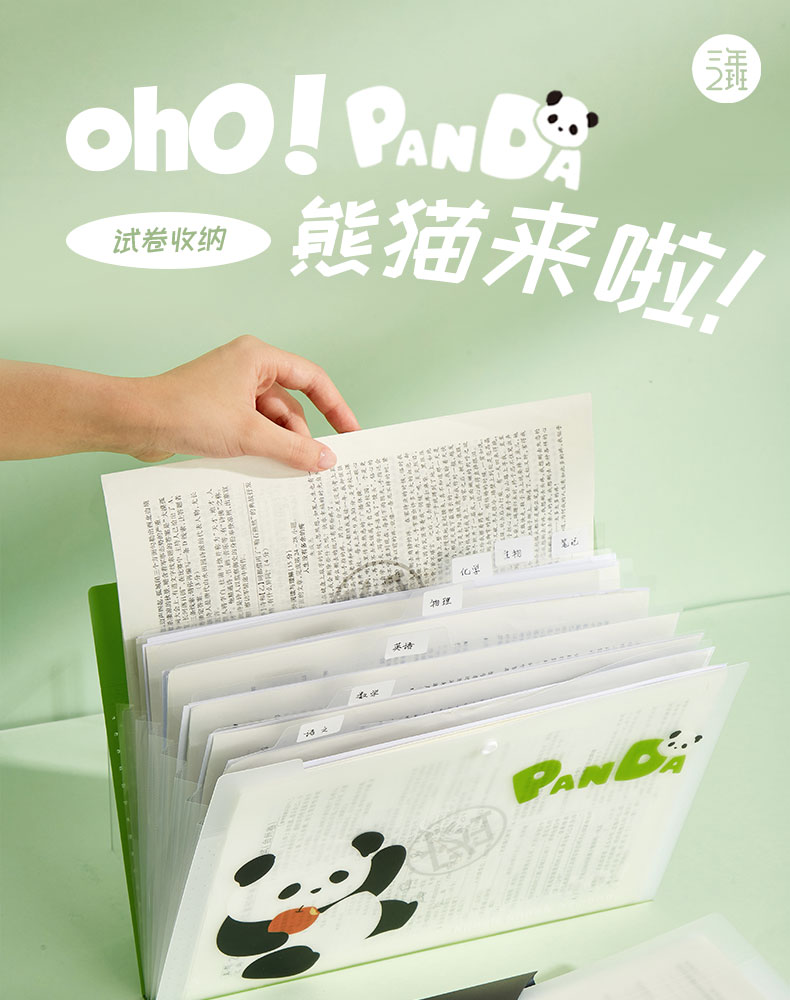 三年二班熊猫透明插页文件袋小学生试卷收纳袋分类整理神器办公资料文件夹风琴包分隔档案袋/个 别抢苹果