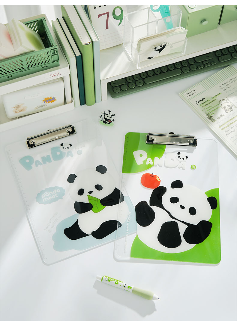 三年二班熊猫亚克力板夹高清透明文件夹学生用考试硬板写字垫板办公用品资料夹收纳夹菜单琴谱夹子/个 让我想想