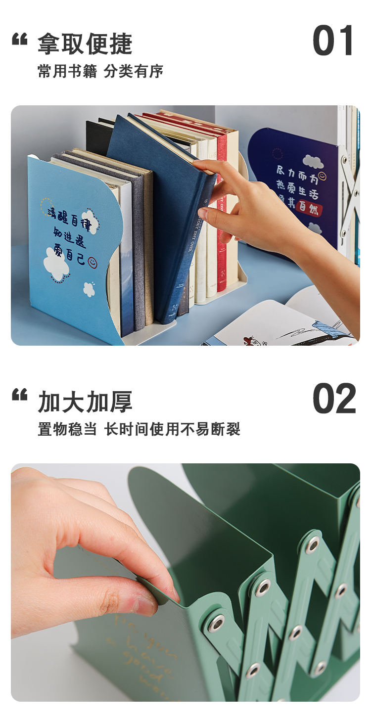 三年二班 励志文字书立伸缩大号简约阅读立书架书夹学生用桌面书本收纳折叠简易书挡板/个 相信自己-原野绿