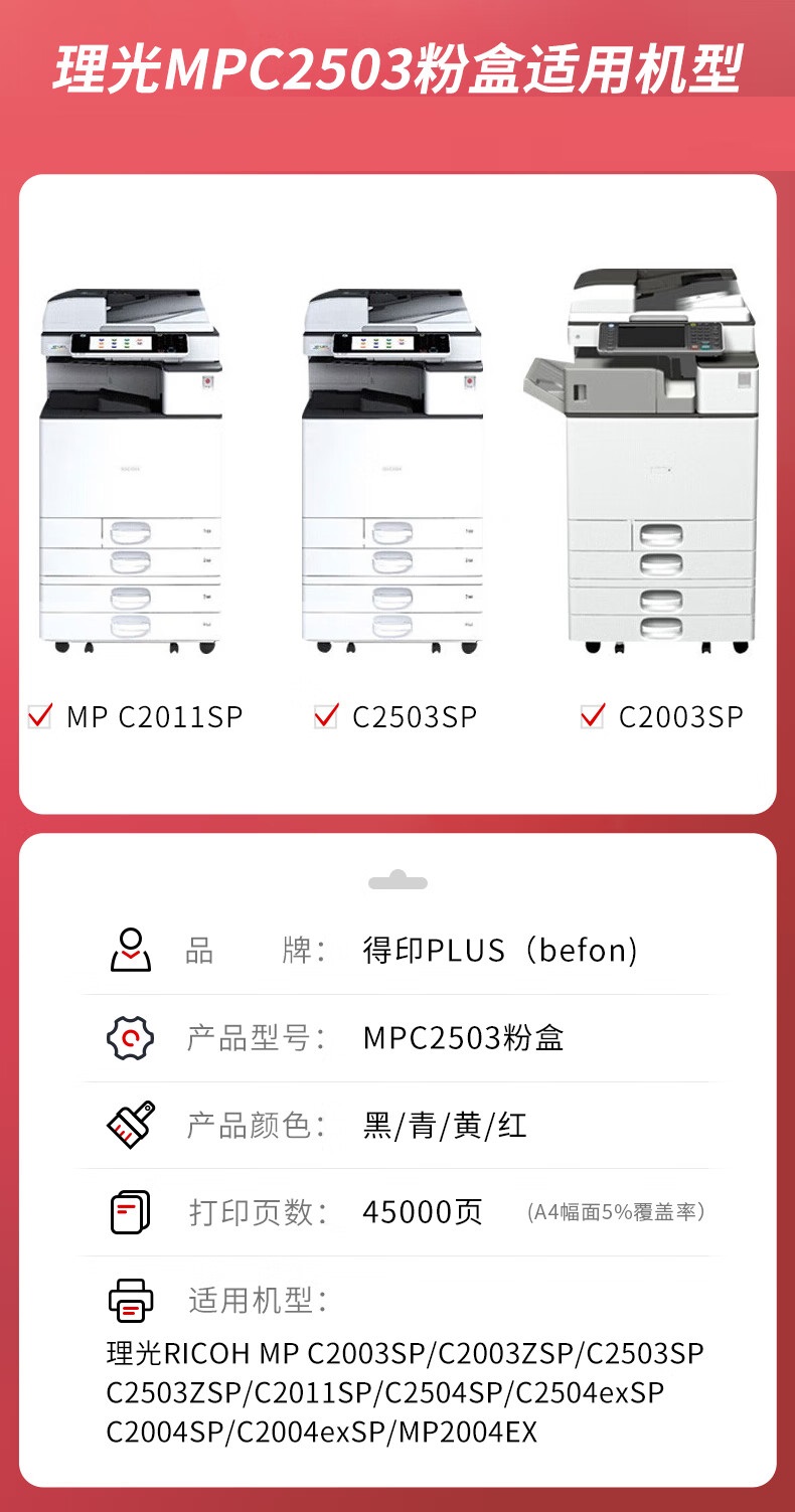 得印PLUS MPC2503四色粉盒套装 理光C2003SP/C2503SP/C2011SP单位:套
