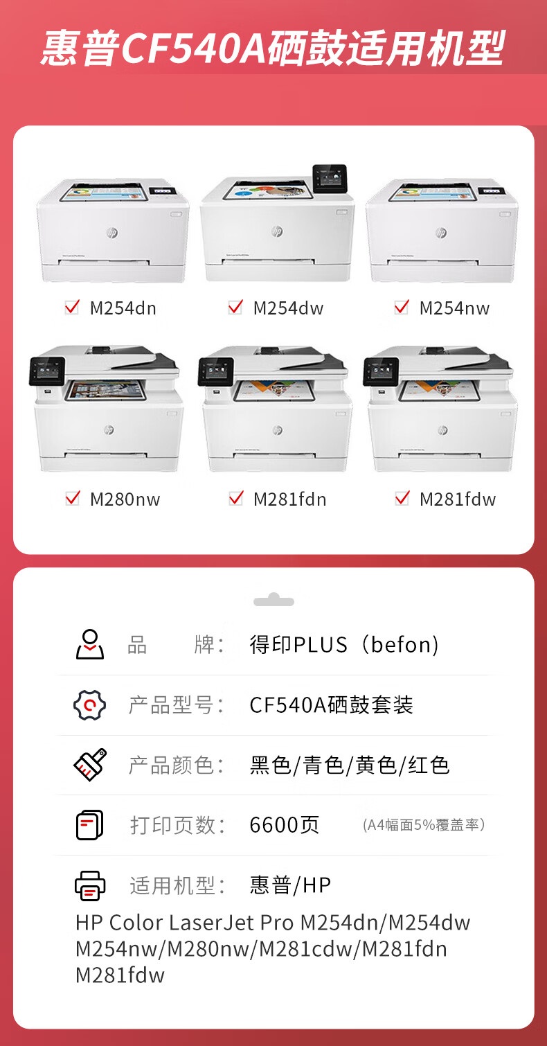 得印PLUS CF540A四色硒鼓套装 惠普M254DW/NW/M280NW 单位:套