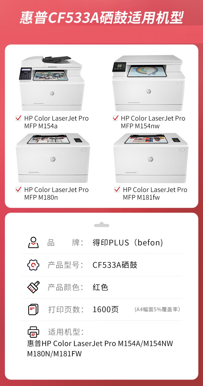 得印PLUS CF533A红色硒鼓 惠普M154A/nw/M180N/M181FW 单位:支 红色