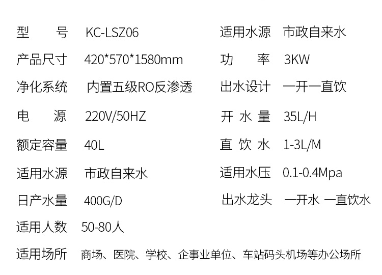 柯淇 (KOCHIN) 步进式开水器 KC-LSZ06 单位:台 白色