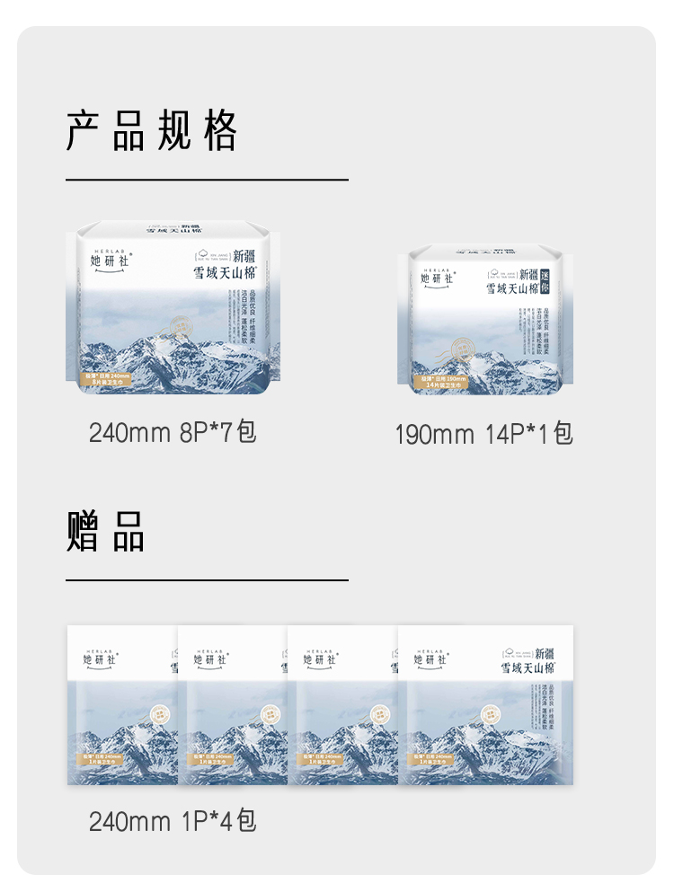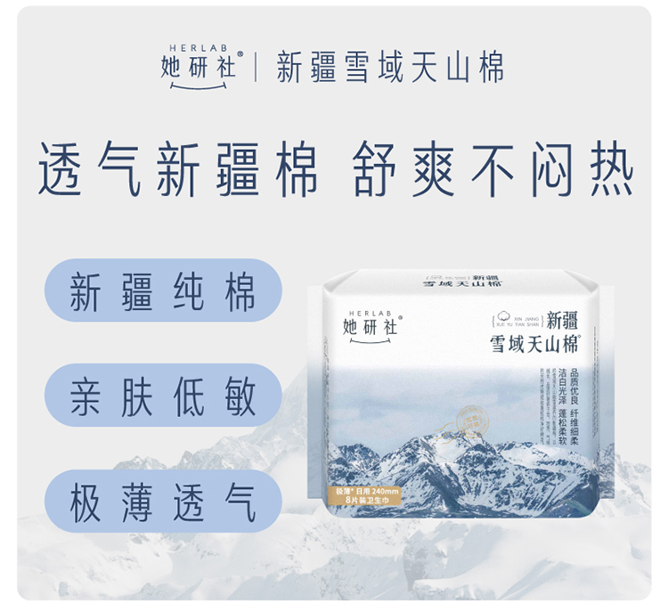 她研社新疆棉卫生巾日用组合8包共70片+4片同款日用便携装