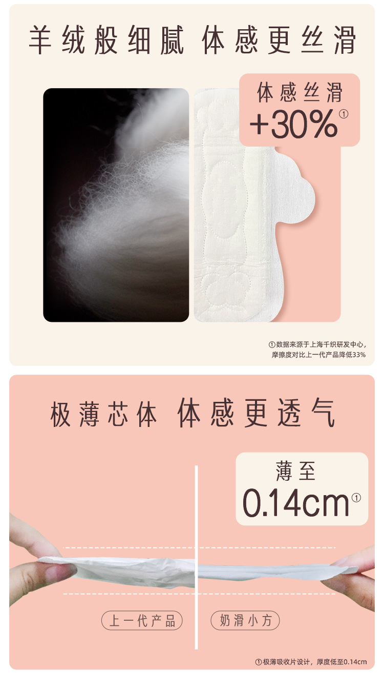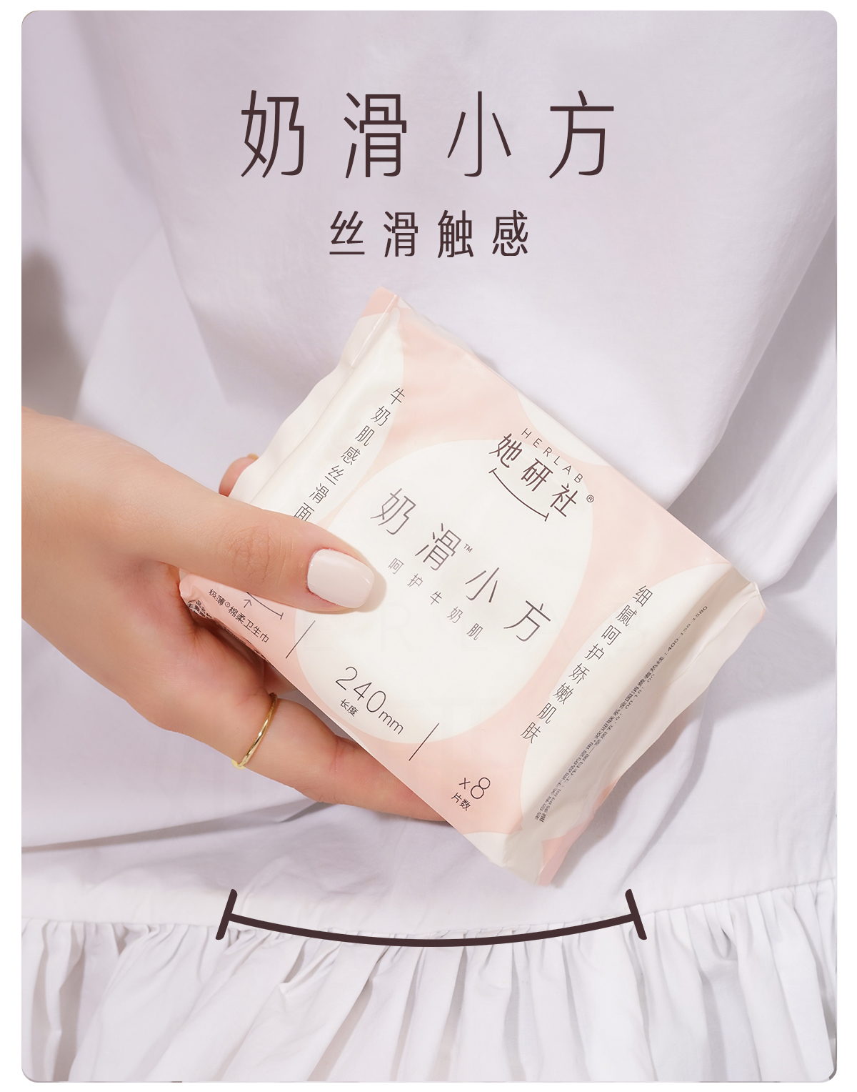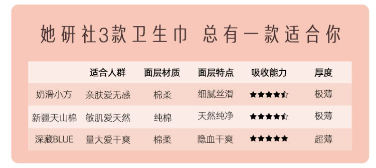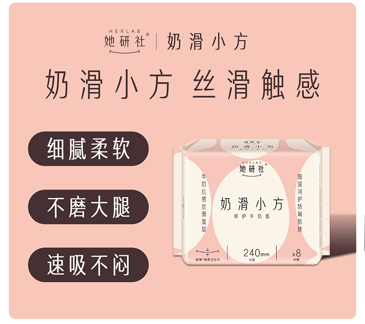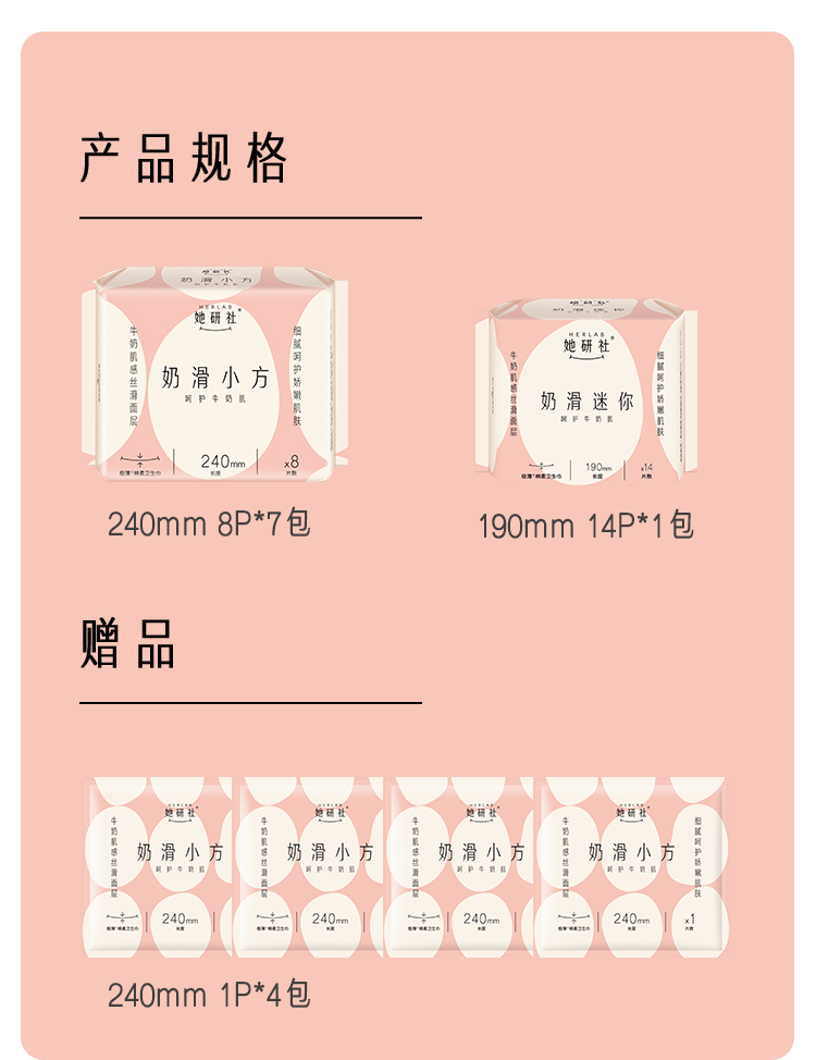 她研社奶滑小方卫生巾日用组合8包共70片+送4片同款日用便携装