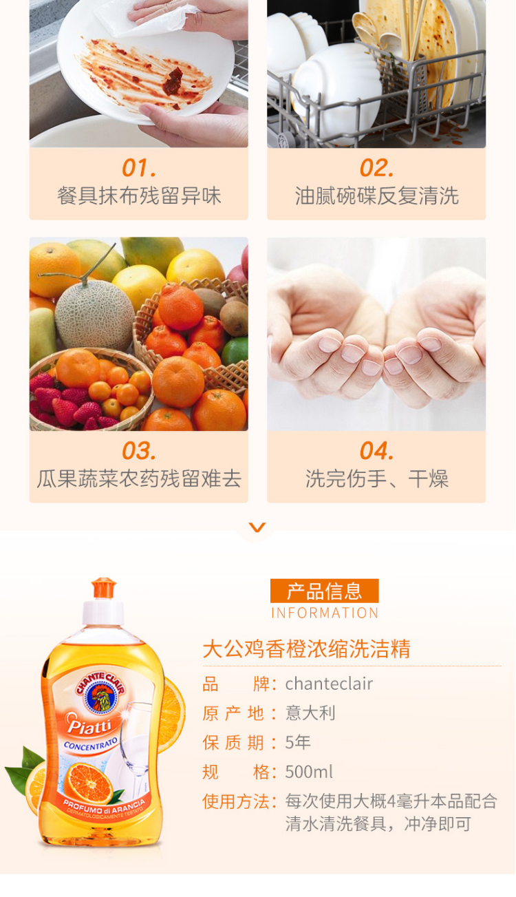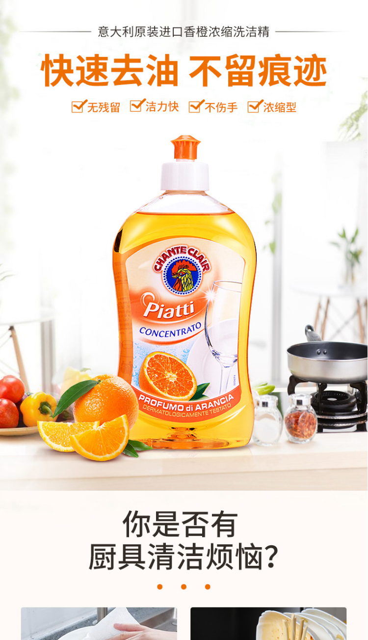 大公鸡管家 四件套(香橙洗洁精500ml*2+马赛皂300*2)(计价单位:套) 灰橙色