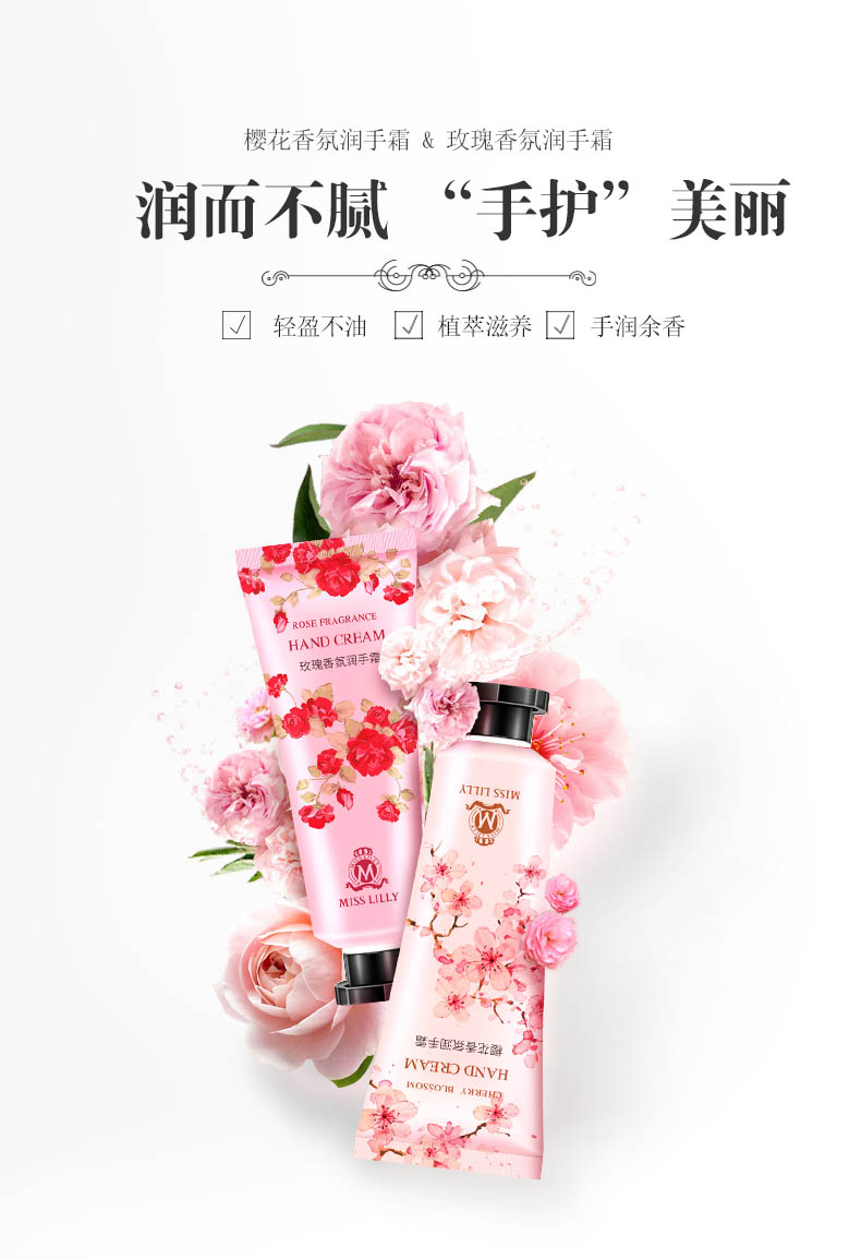 蜜斯莉 香氛护手霜 樱花50g+玫瑰50g(计价单位:套) 茱萸粉