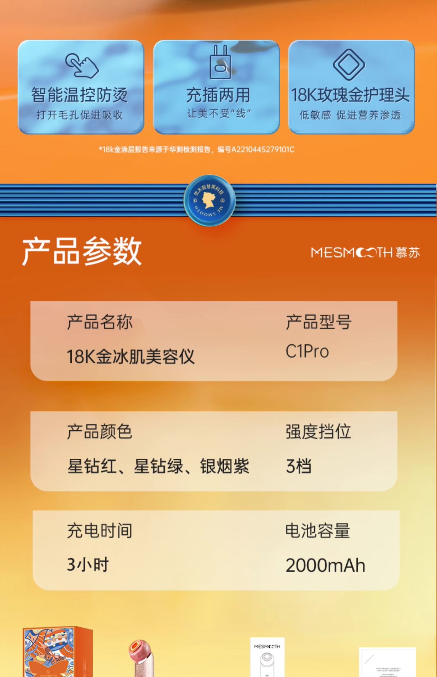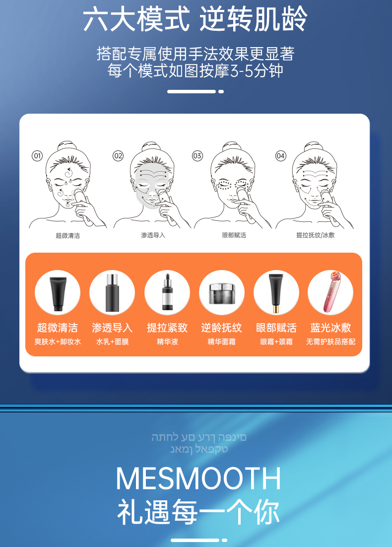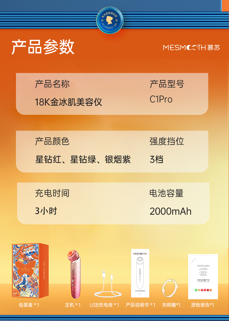 MESMOOTH慕苏美容仪脸部眼部按摩仪提拉紧致家用清洁去黑头导出导入仪光子嫩肤(单位:台) 碎银红
