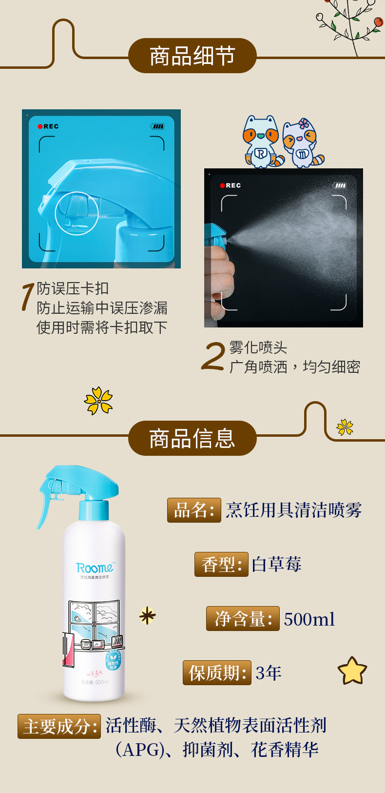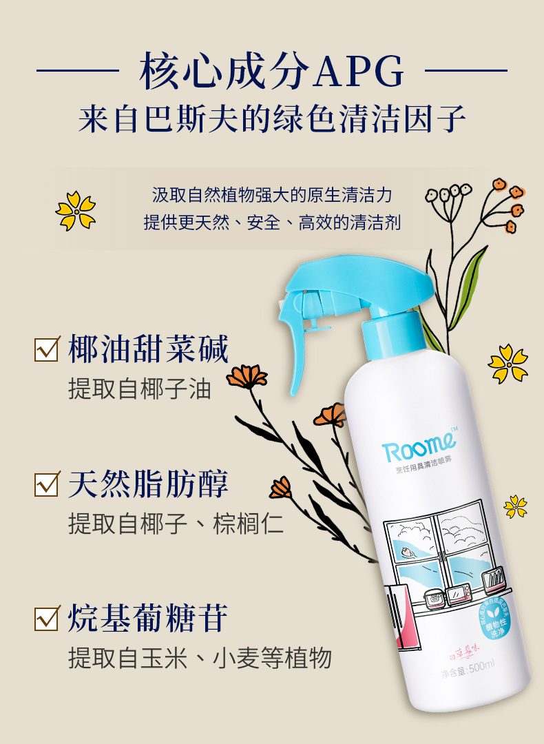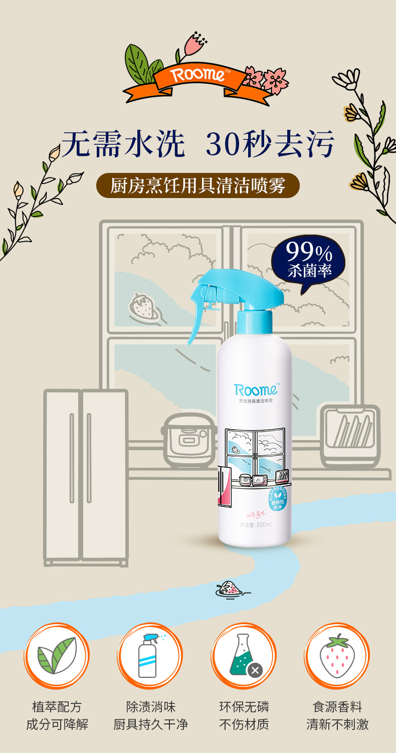 roome 烹饪用具清洁喷雾 500ml/瓶*3瓶 500ml/瓶*3瓶