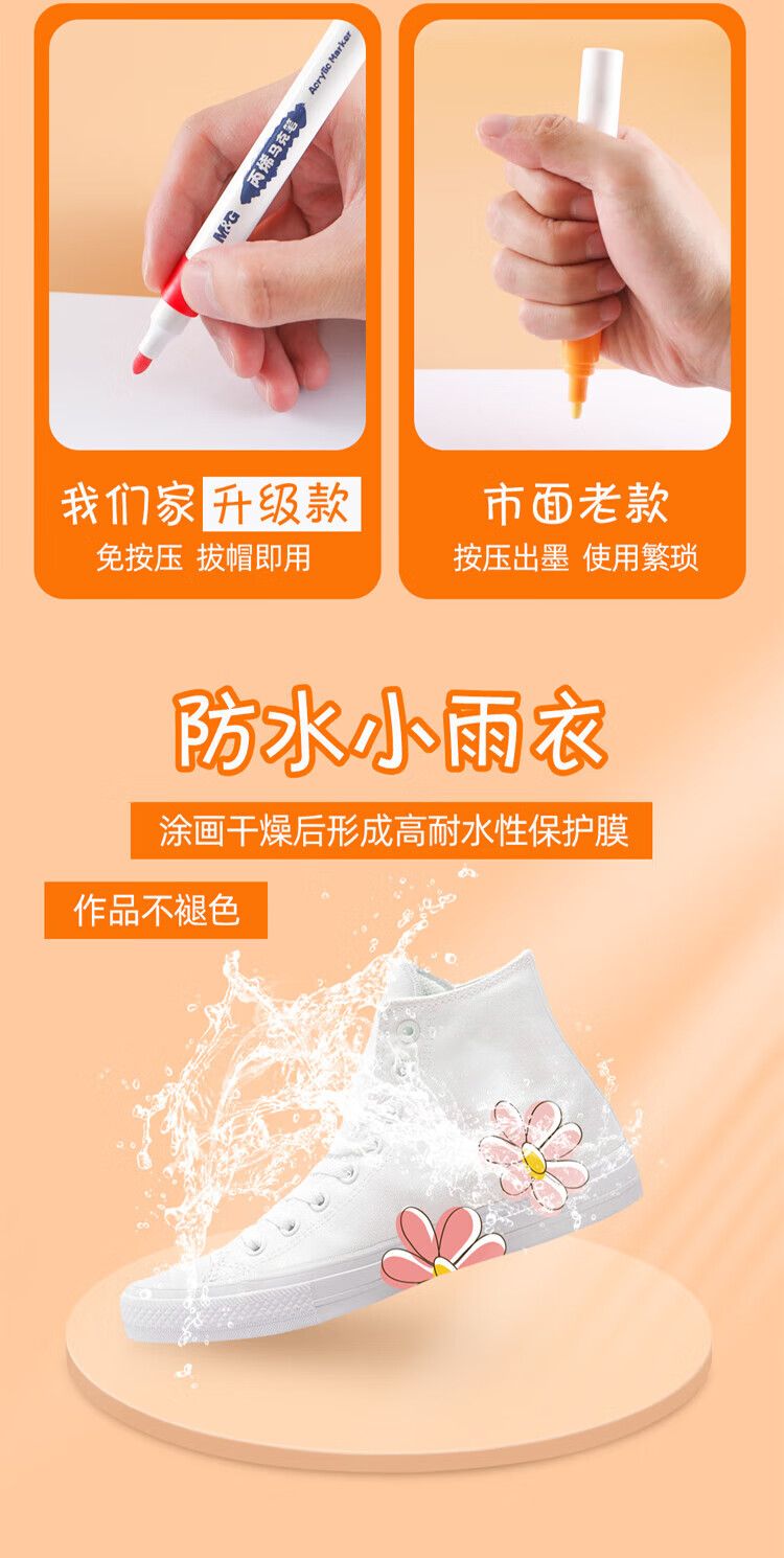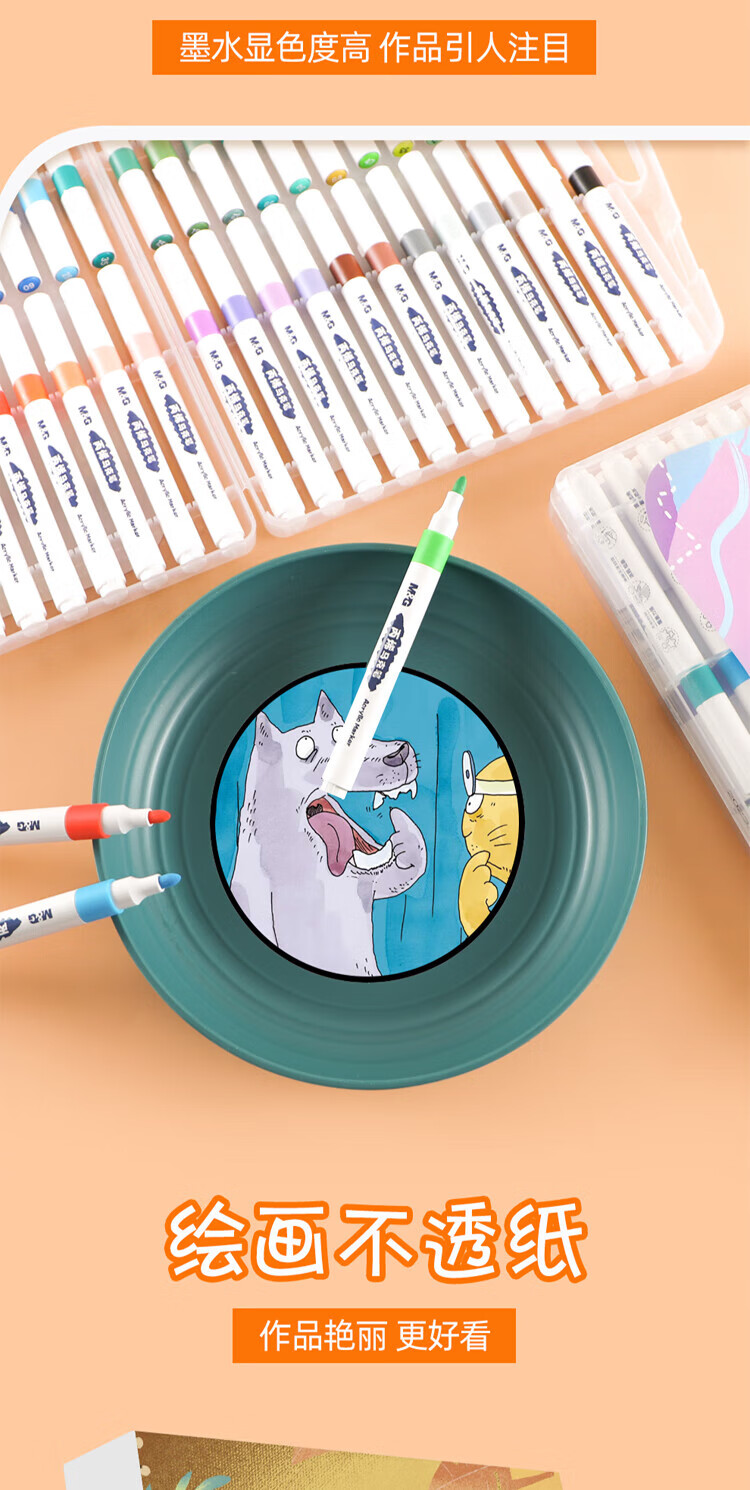 晨光(M&G)文具24色水性丙烯马克笔 涂鸦画笔DIY丙烯颜料 考试礼物APMT3314 套