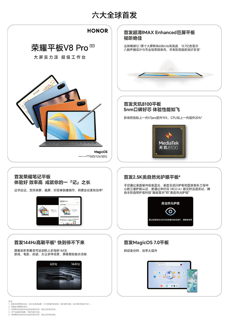 荣耀平板V8 Pro 12.1英寸(单位:台) 星空灰 8+256G