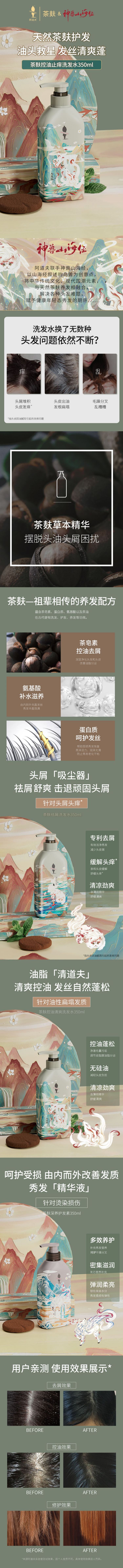 阿道夫茶麸冰护理专研无硅油洗发水(祛油止痒)350ml-山海经+护发素350ml-山海经+沐浴液35 混色