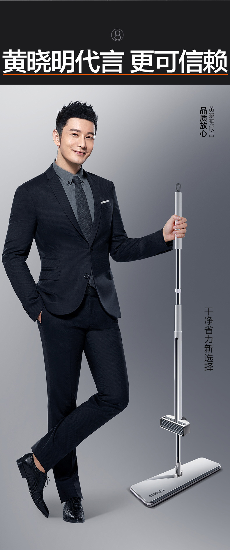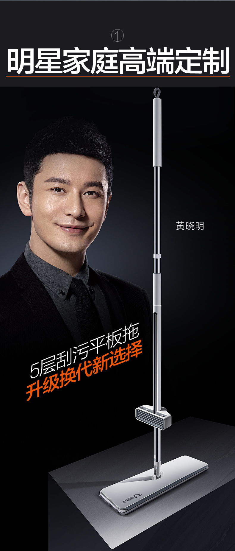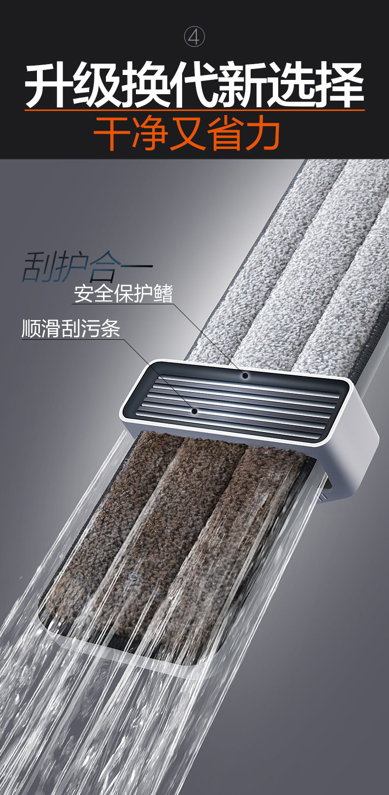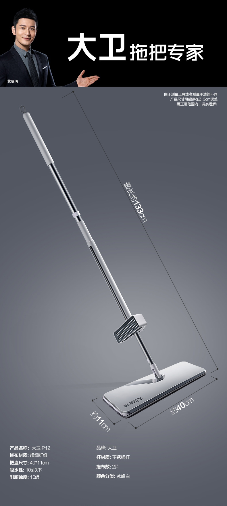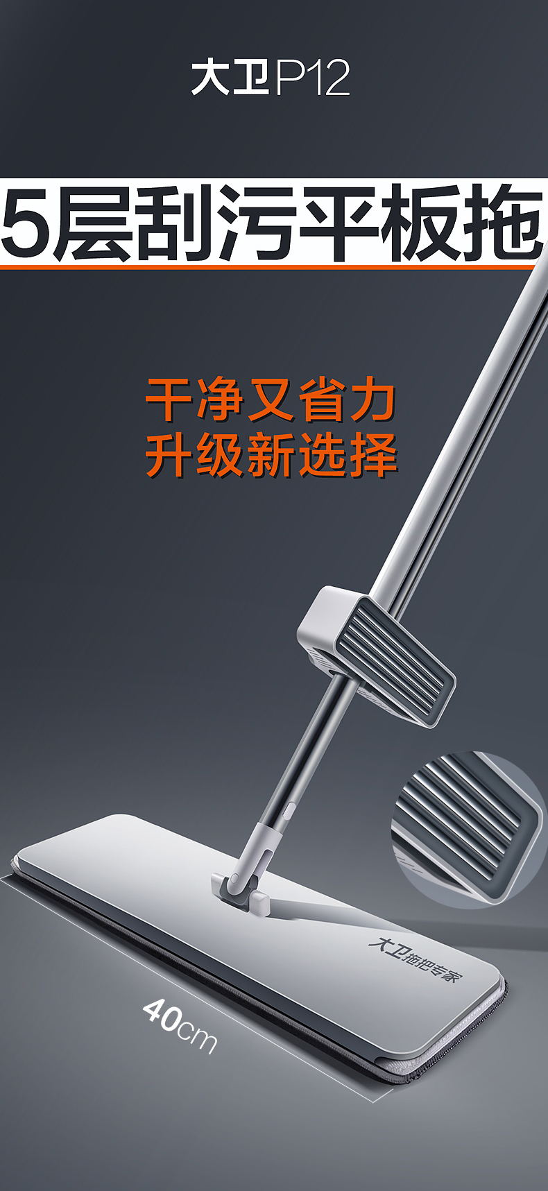 大卫【黄晓明同款】免手洗平板拖把加厚三层大拖布5层刮污P12 灰白色