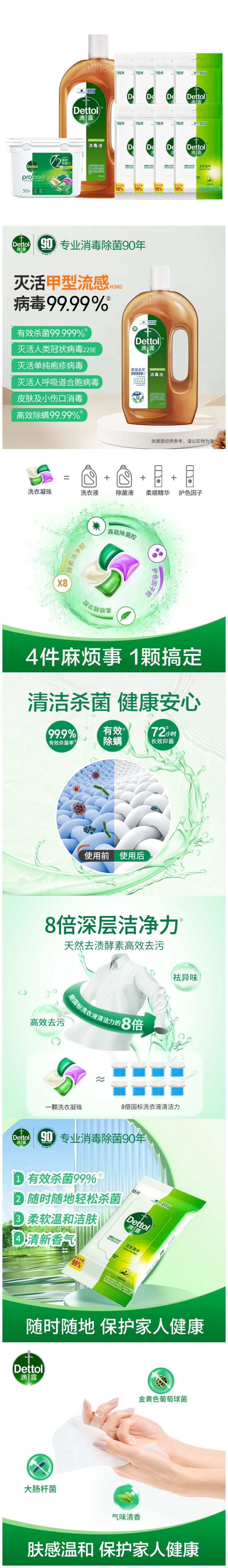 滴露消毒液750ml+洗衣凝珠50颗+湿巾10片×8包装 混色