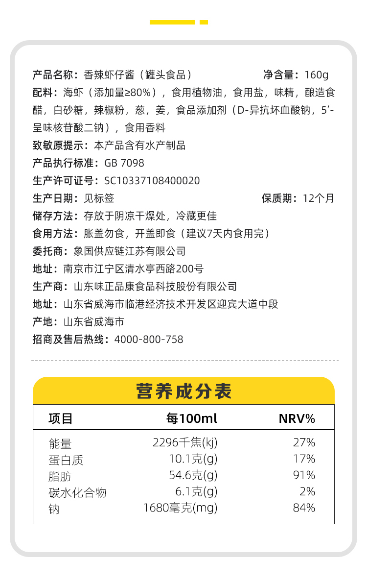 象国虾仔酱320g(鲜香160g*1 +香辣160g*1) 单位:盒 拿铁色