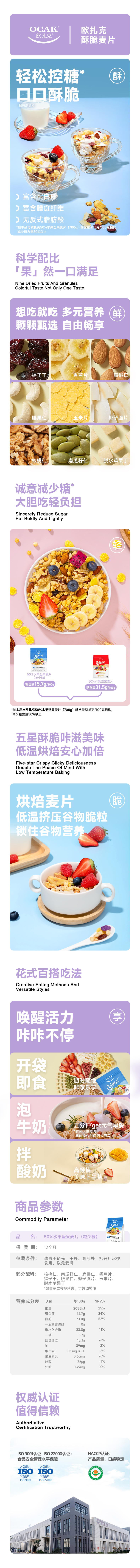 欧扎克 50%水果坚果麦片减少糖600g单位:袋 宝石蓝 减少糖