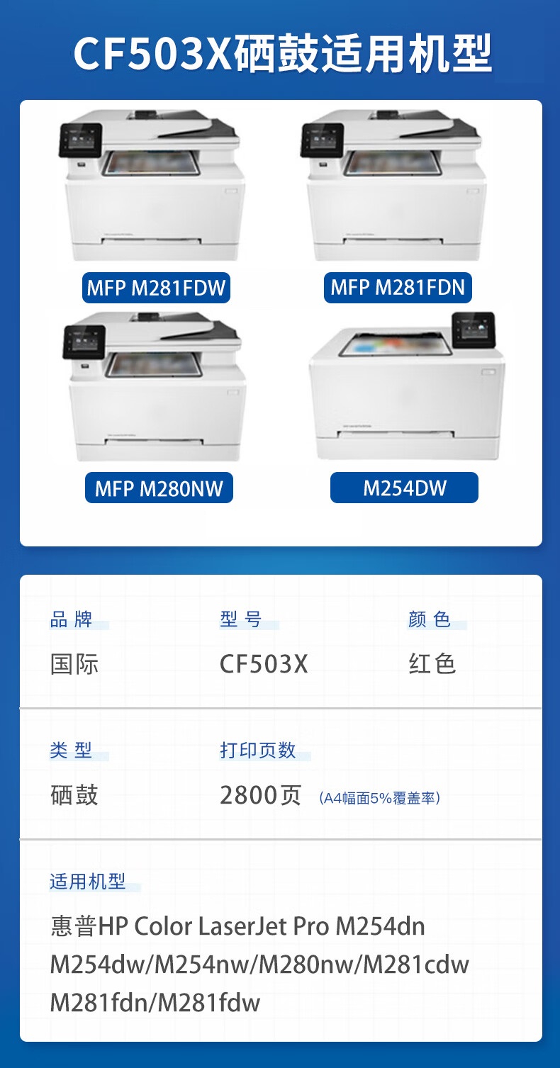 国际 CF503X带芯片硒鼓 惠普m281fdw m254dw/nw M280NW 单位:支 红色