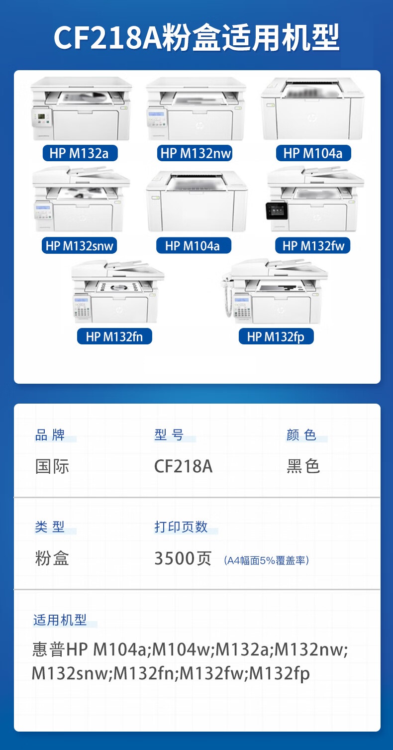 国际 CF218A 带芯片大容粉盒 惠普m132nw m104w m132a 单位:支 黑色