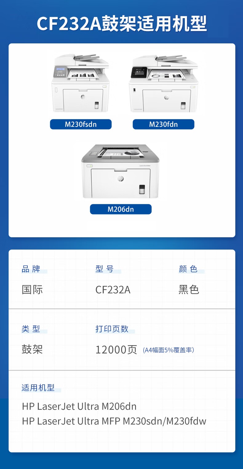 国际 CF232A鼓架 惠普M206dn M230fdn M230sdn 单位:支 黑色