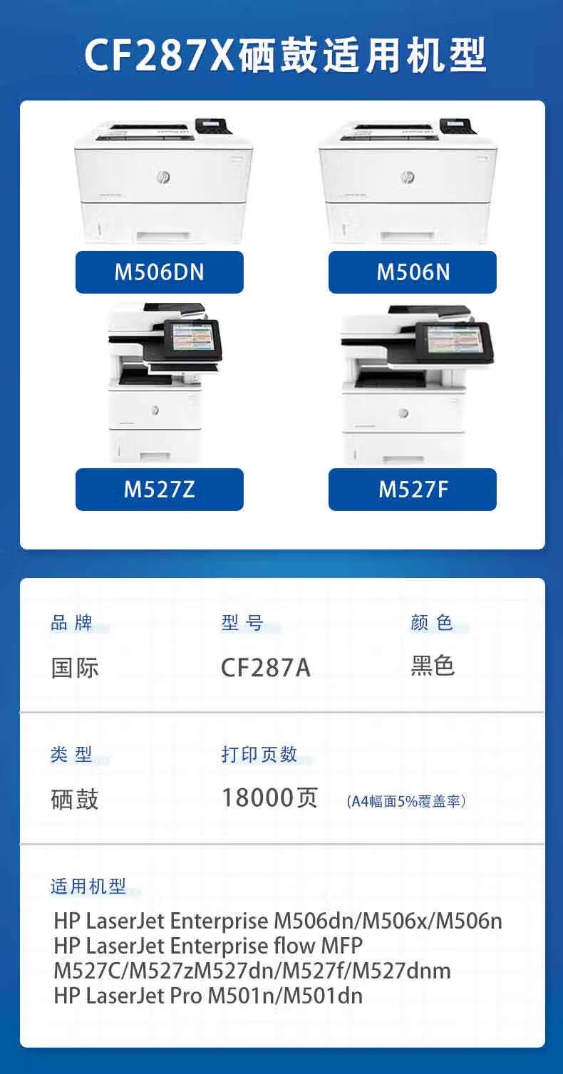 国际 CF287X带芯片大容硒鼓 惠普M501n M527f M506dn M527z单位:支 黑色