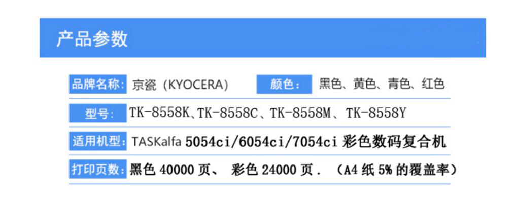 京瓷(KYOCERA) TK-8558M 24000页 适用京瓷5054ci (计价单位:盒) 红色