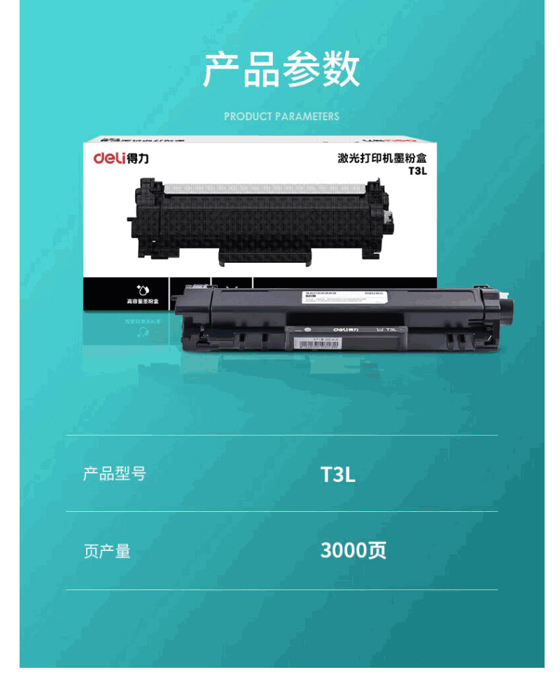 得力(deli) T3L 适用得力P3400DN 3000页 墨粉盒 (计价单位:只) 黑色
