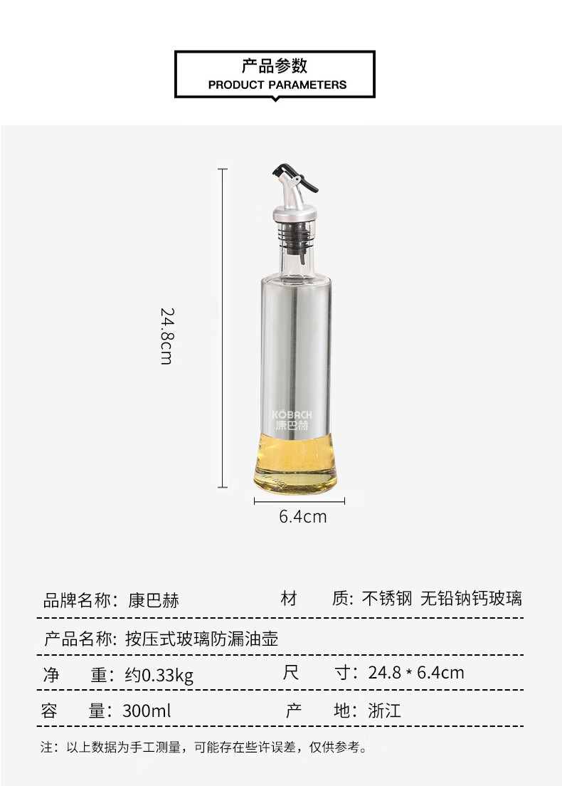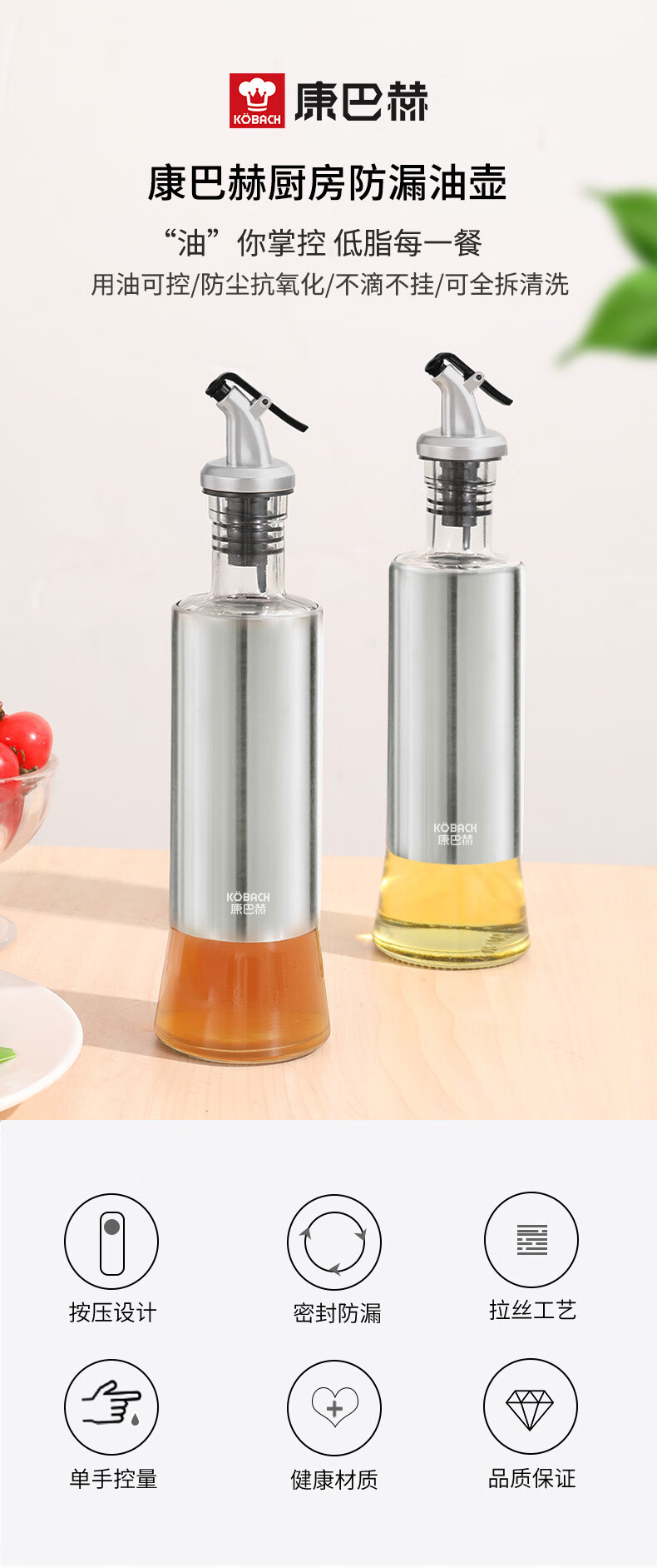 康巴赫 按压式玻璃油壶套装KZP-Y300(单位:套) 钢色