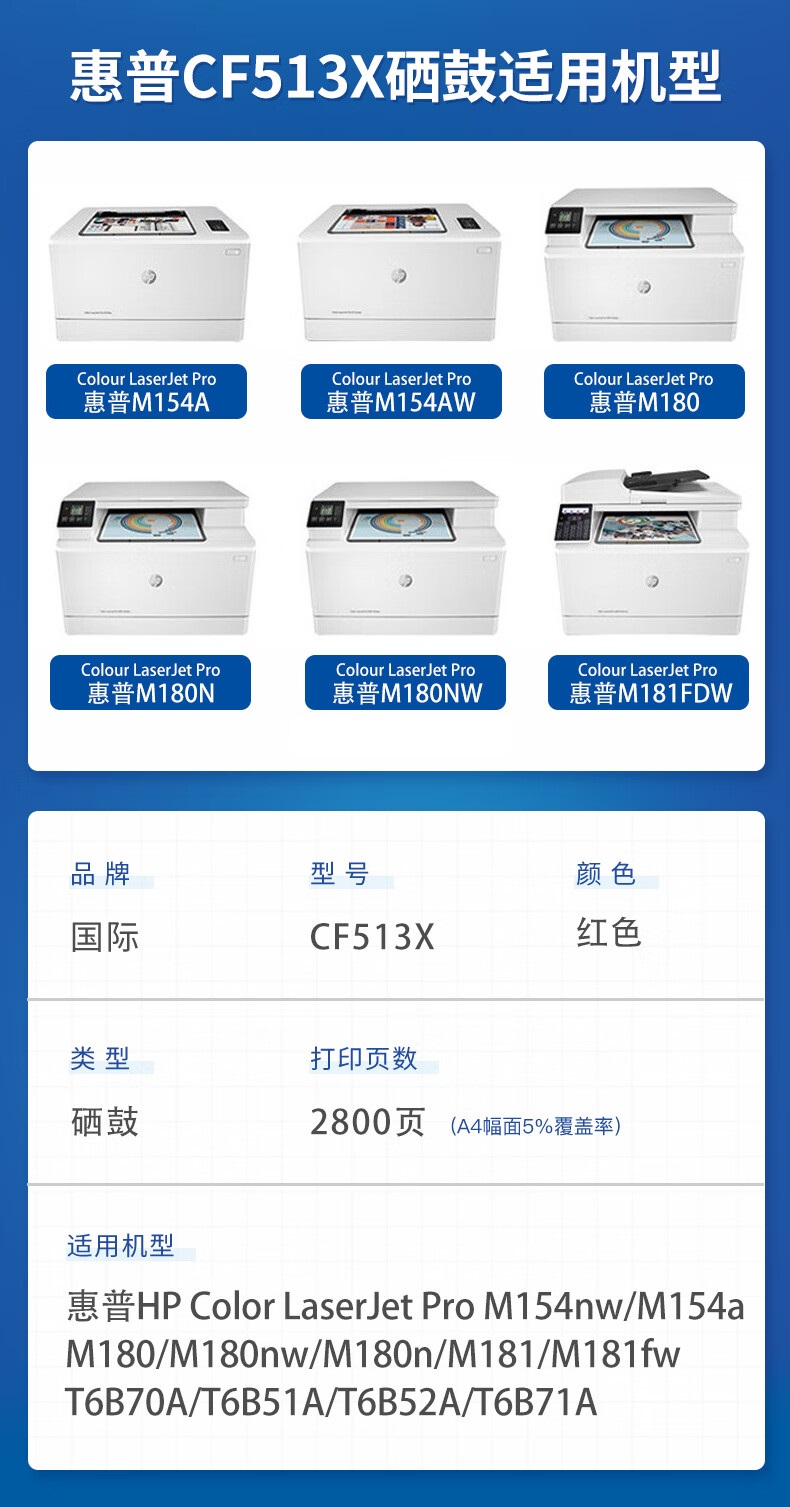 国际 CF513X大容硒鼓 惠普m154a m180n m181fw m154nw 单位:支 红色