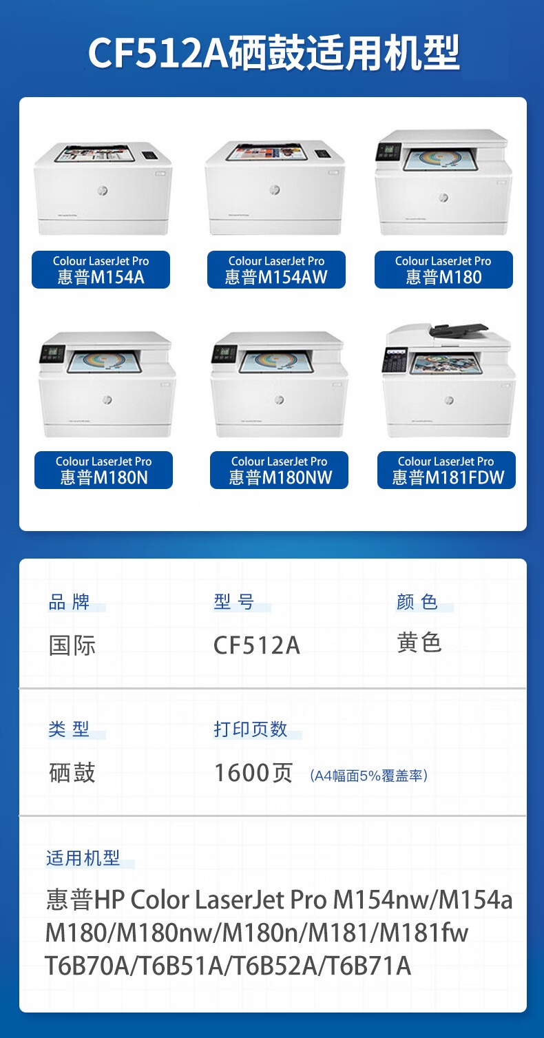 国际 CF512A带芯片硒鼓 惠普m154a m180n m181fw m154nw单位:支 黄色