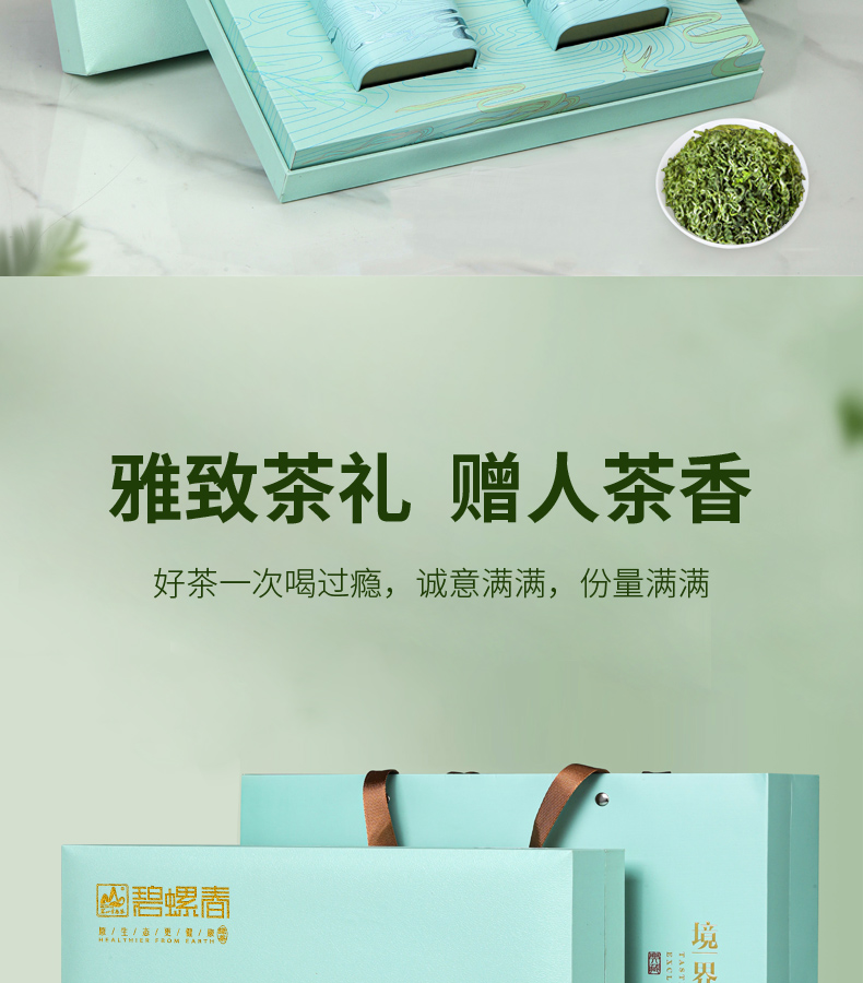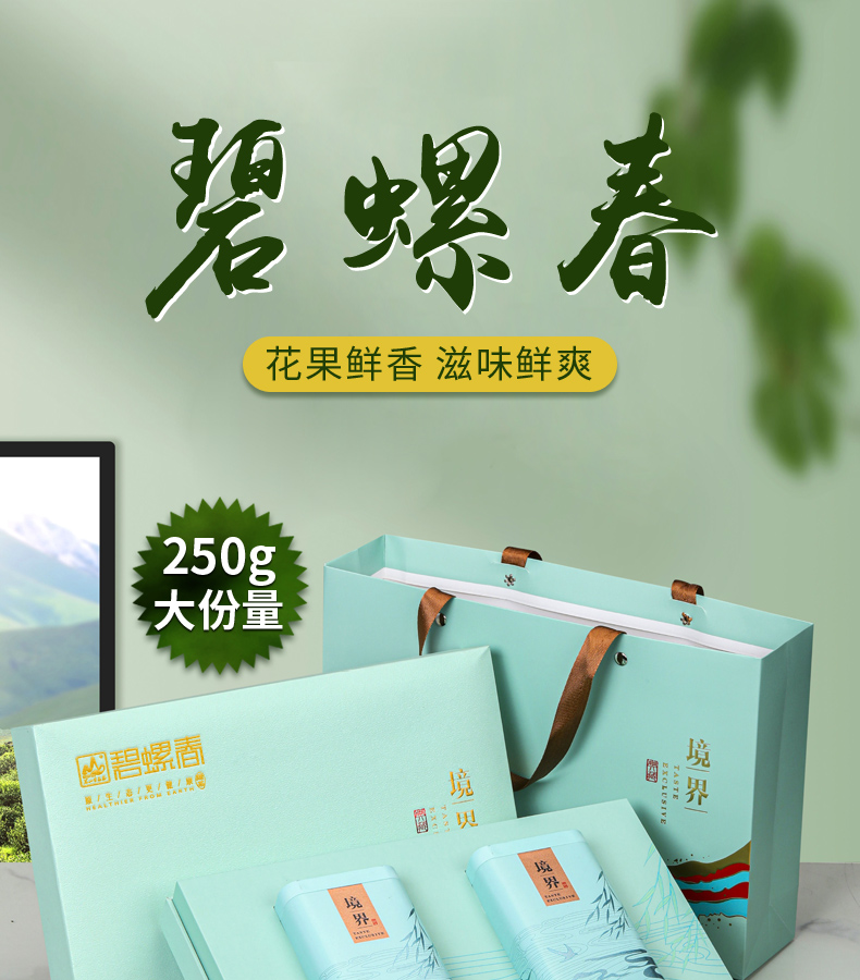 茗山生态茶 茶叶碧螺春 茶叶礼盒装 春茶 2罐/250克/盒单位:盒 蓝色