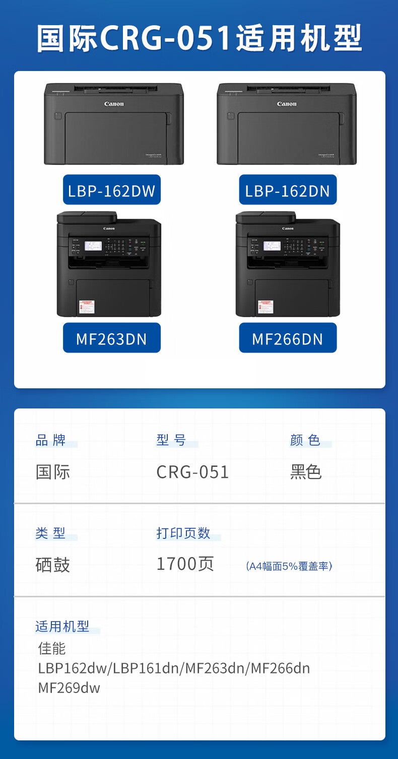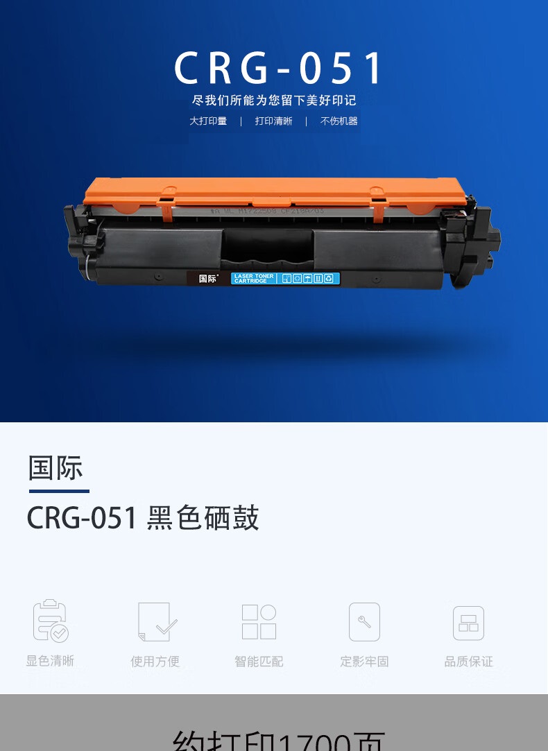 国际 CRG051带芯片硒鼓 佳能LBP162DW LBP161DN MF263dn 单位:支 黑色