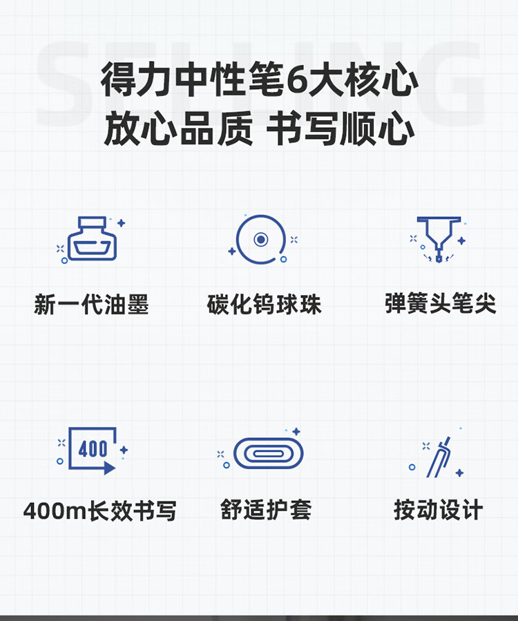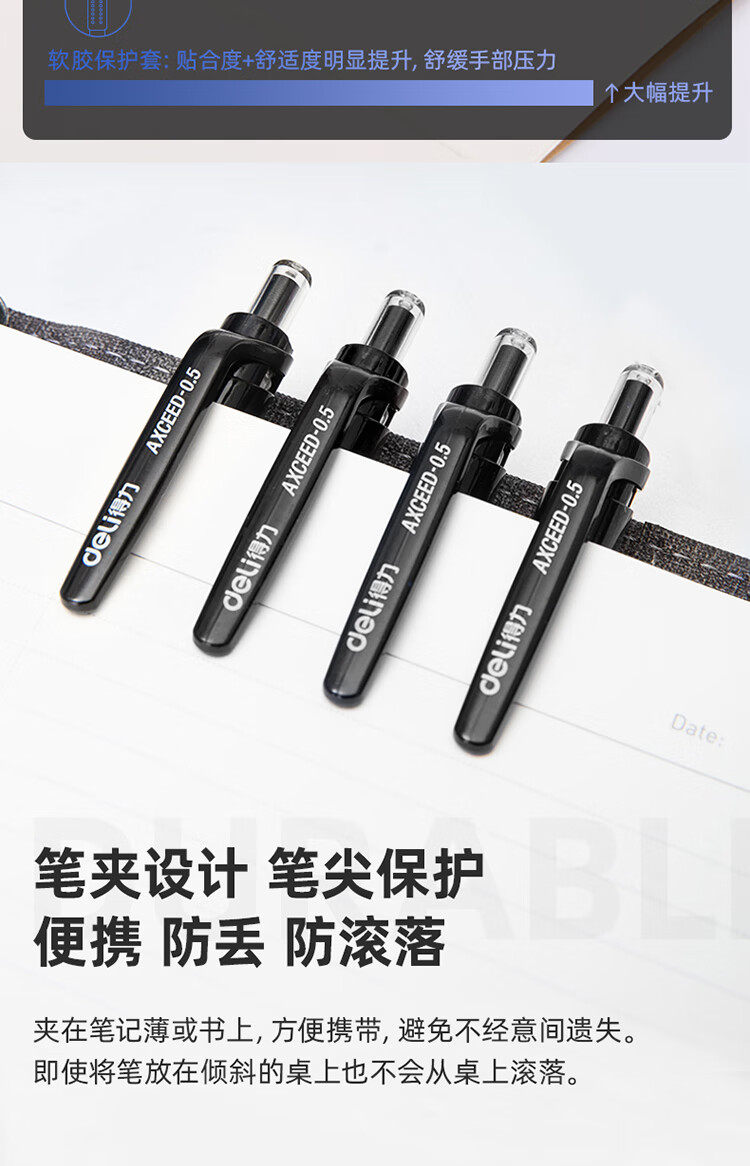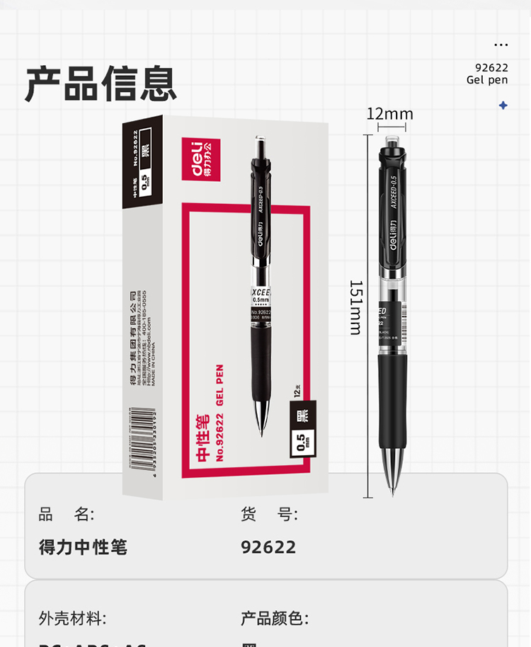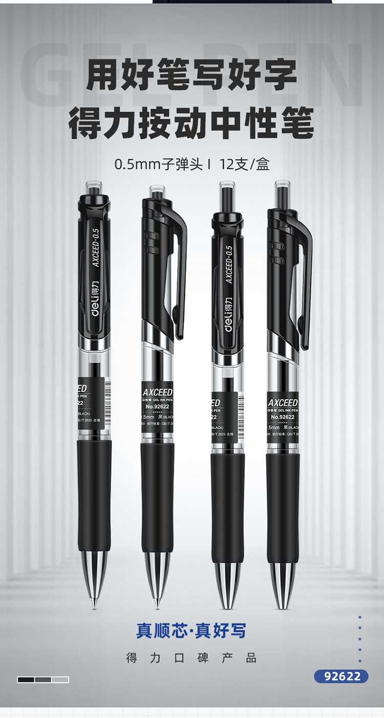 得力(deli)S01中性笔签字笔 0.5mm子弹头经典办公按动笔水笔 黑色 12支/盒 黑色
