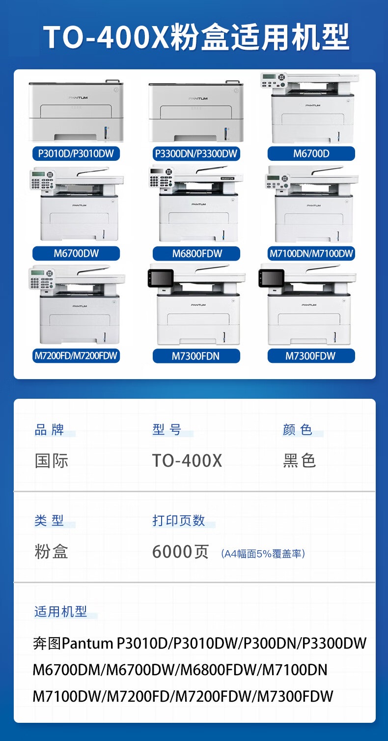 国际 TO-400X超大容粉盒 奔图M7100DN M7100DW M7300fdn 单位:支 黑色