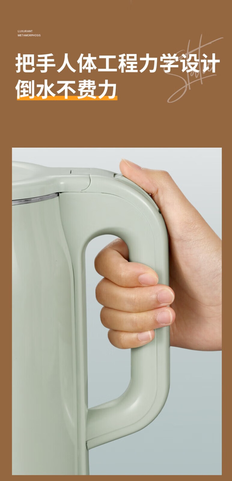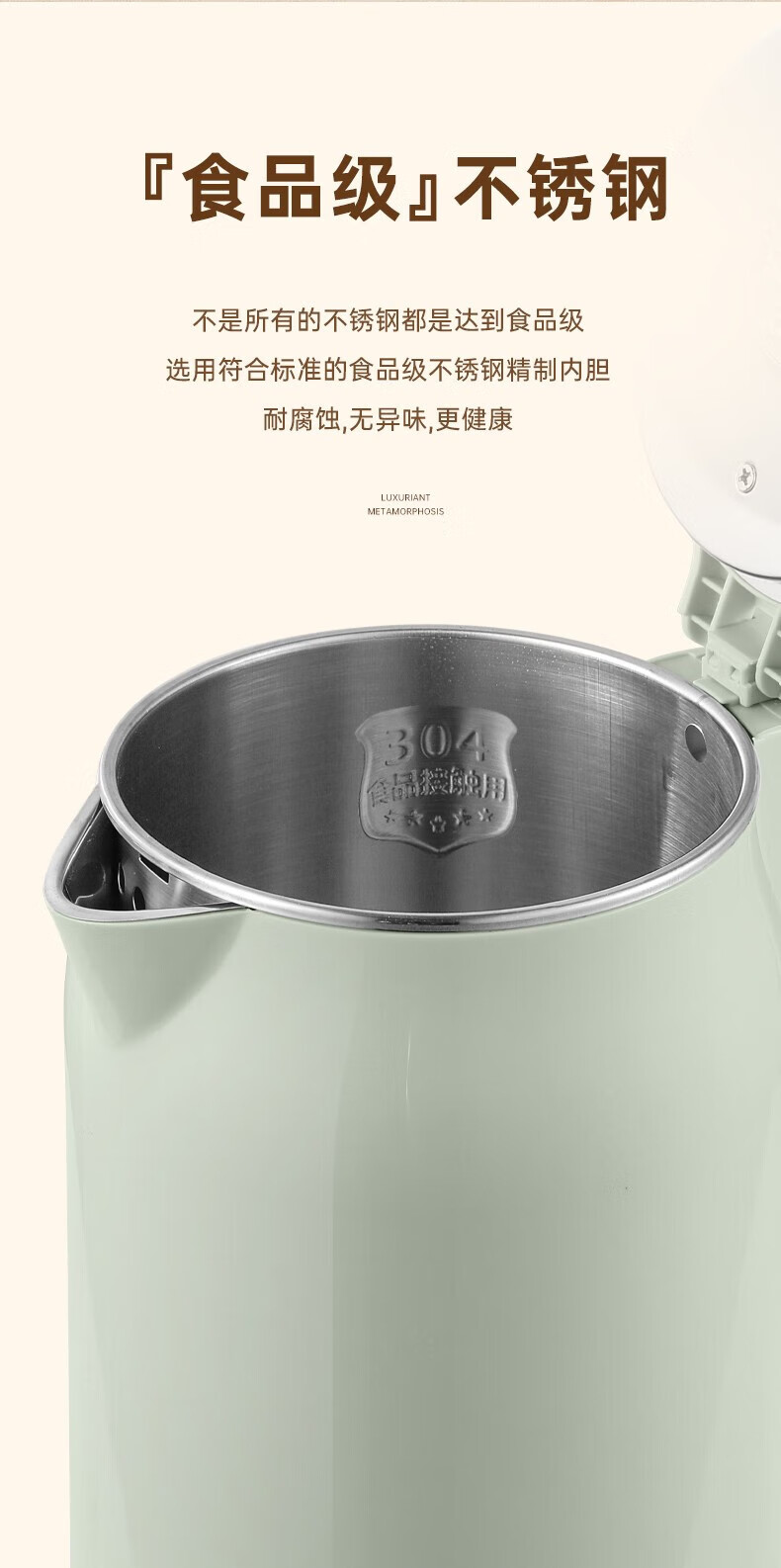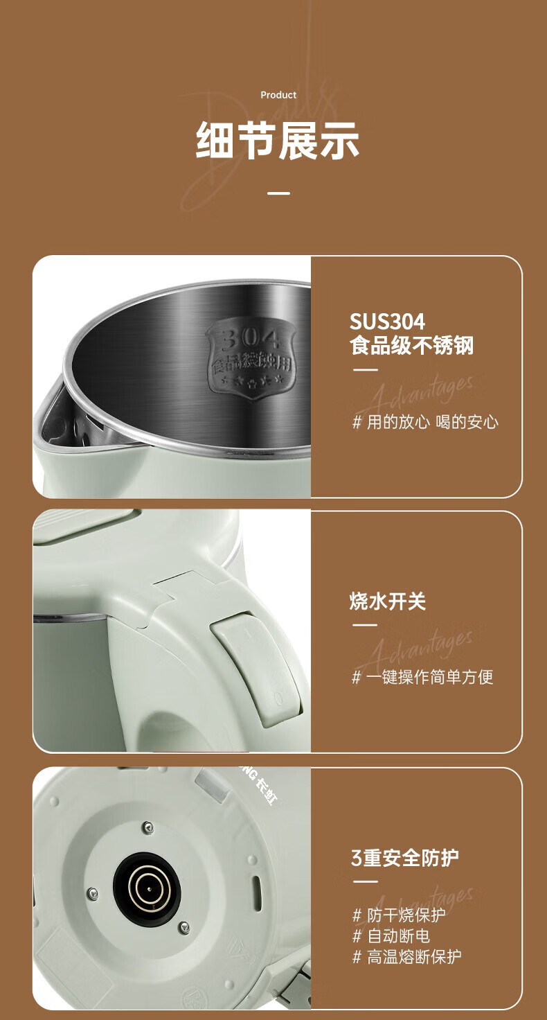 长虹电热水壶 304不锈钢双层防烫 1.8L大容量CSH-HSF001单位:个 薄荷绿